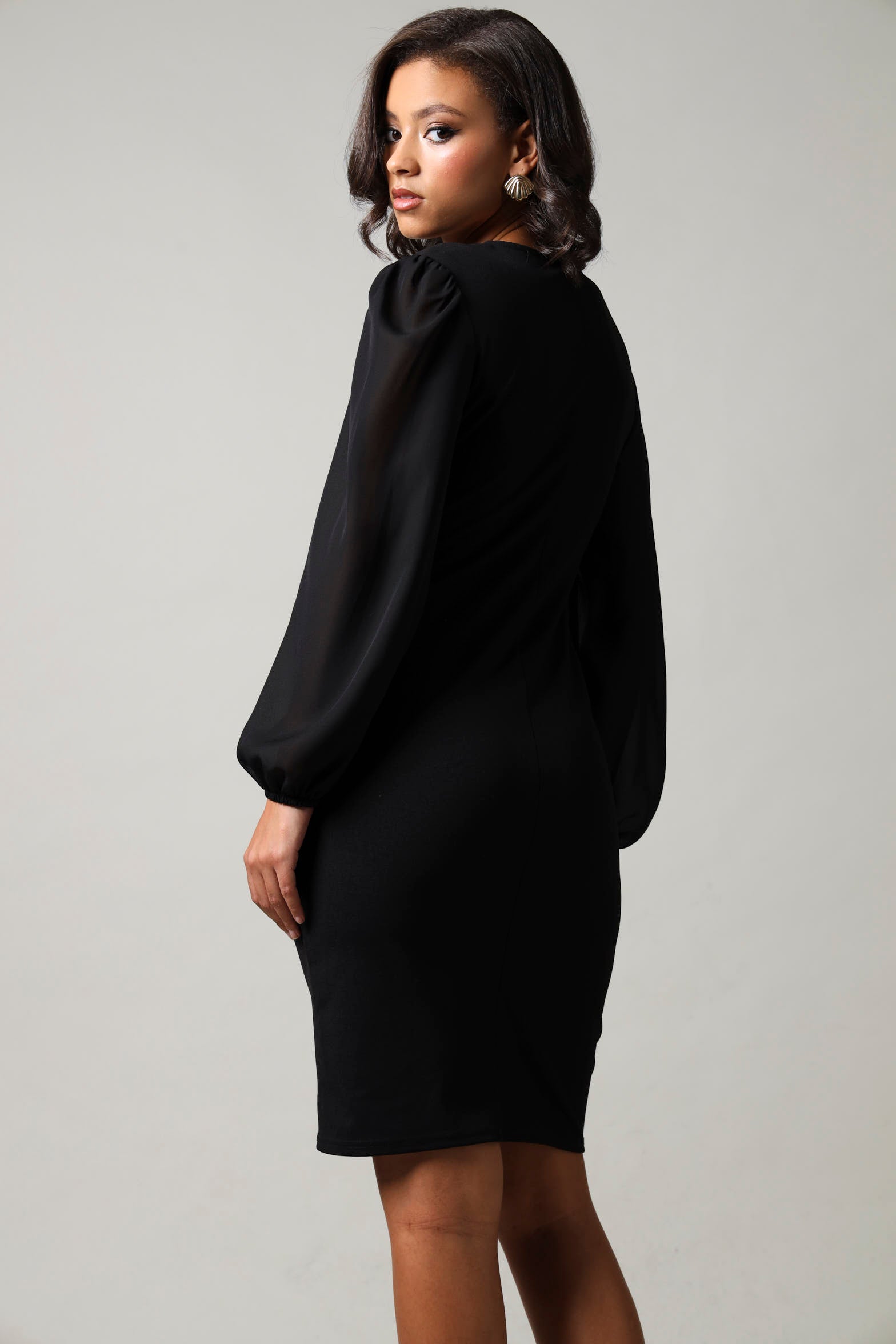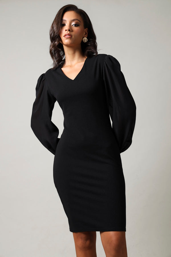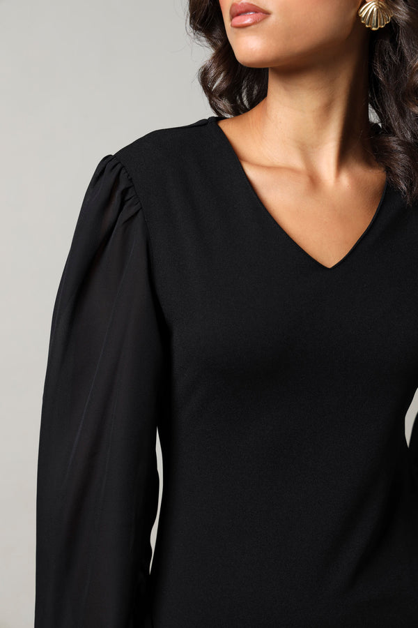 Long Sleeve Chiffon Combo Dress - Black