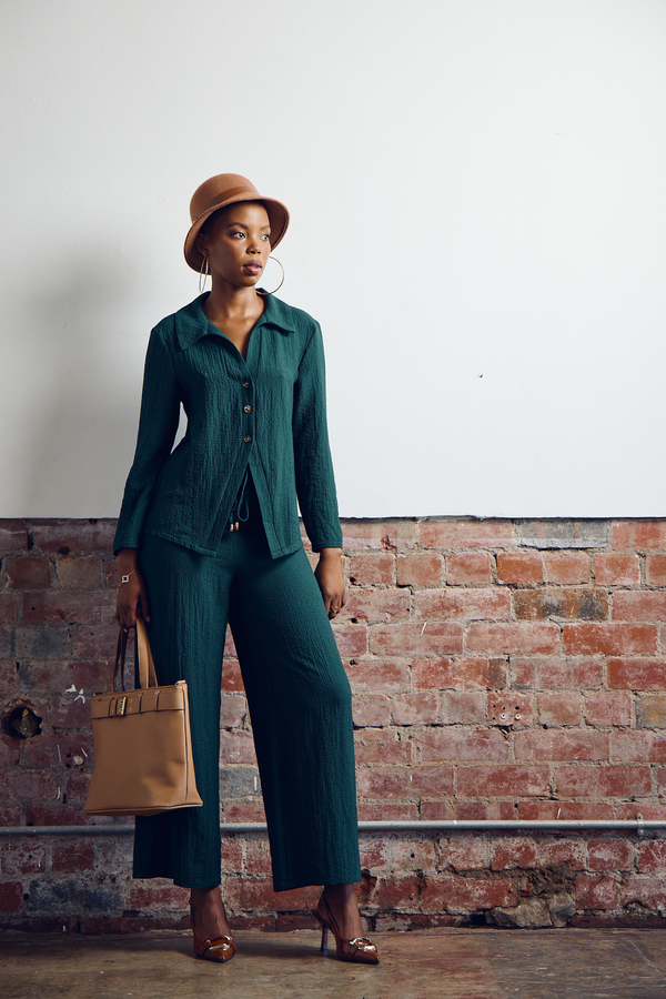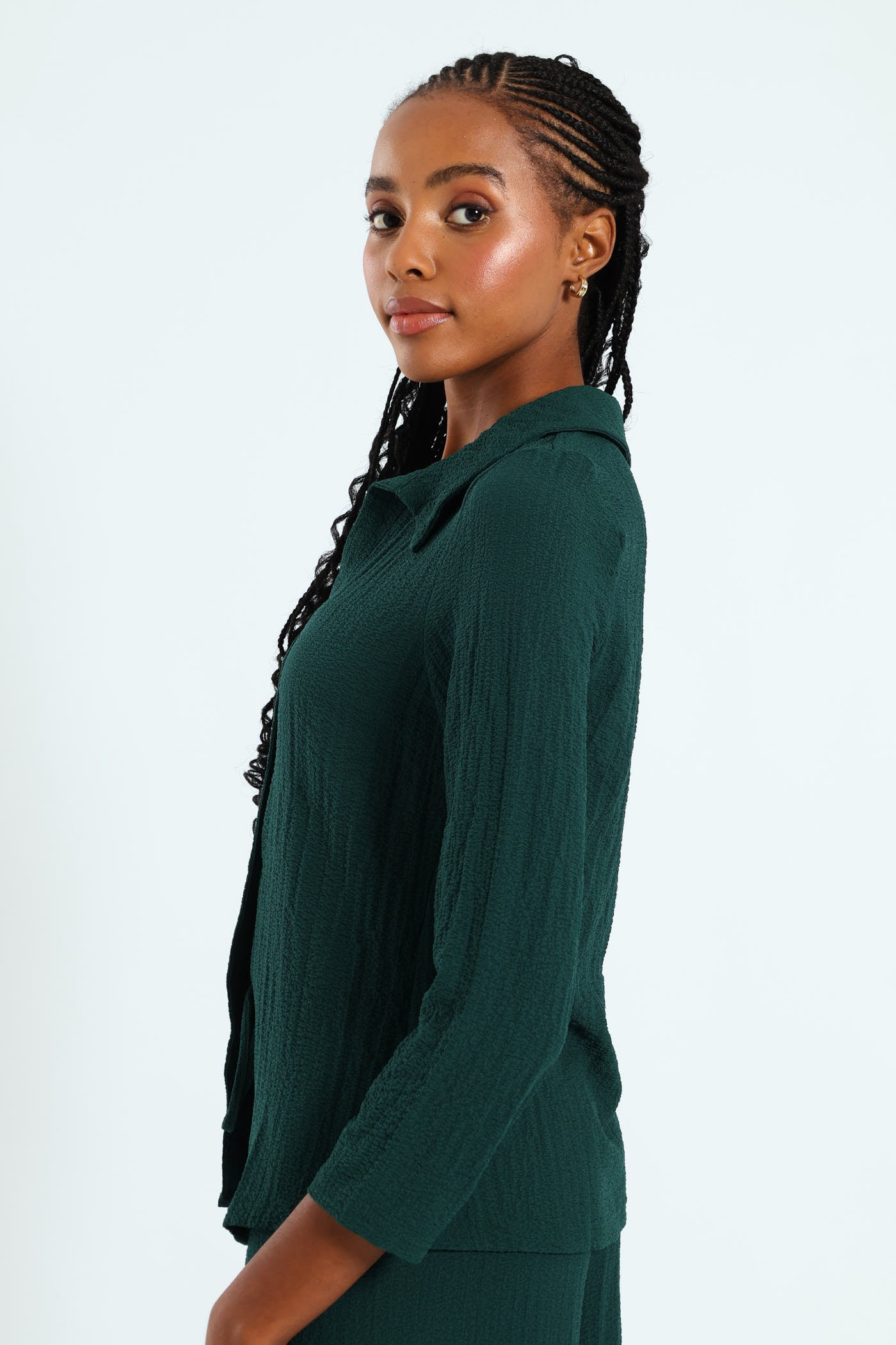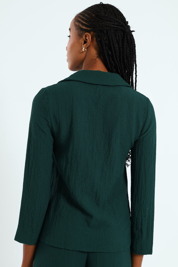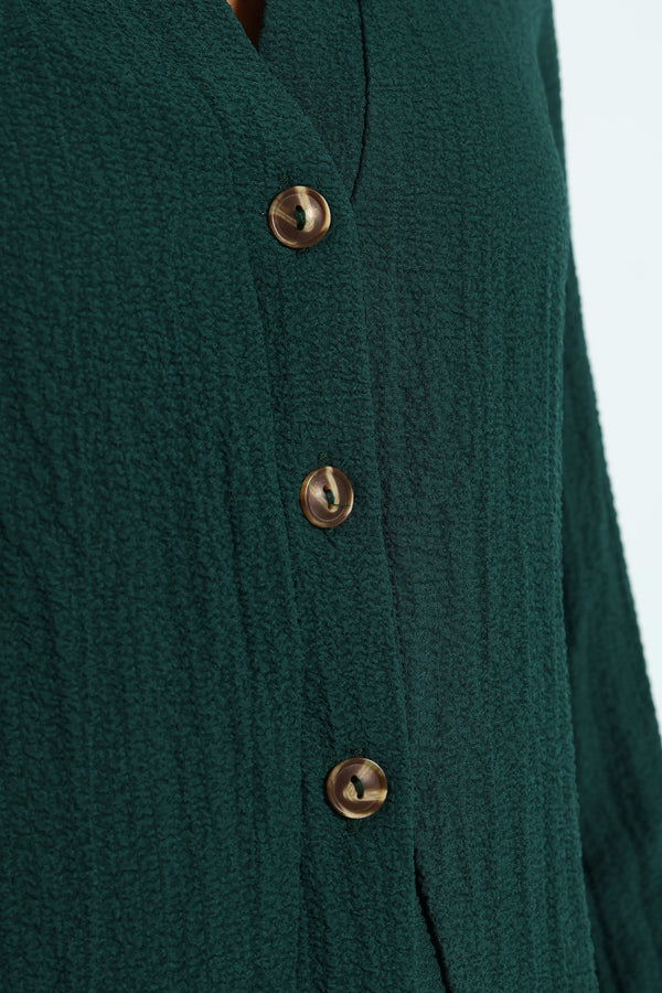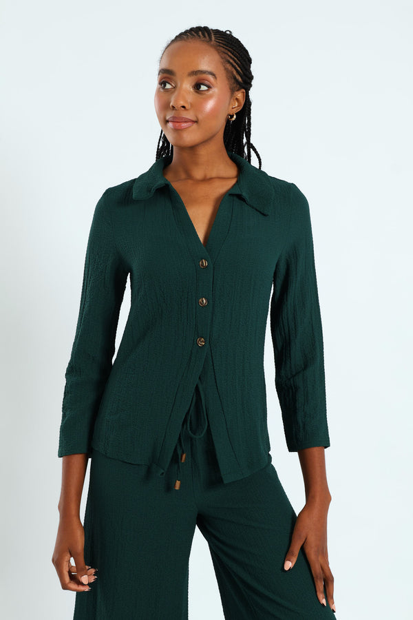 Long Sleeve Crinkle Woven Button Front Shirt - Dark Green