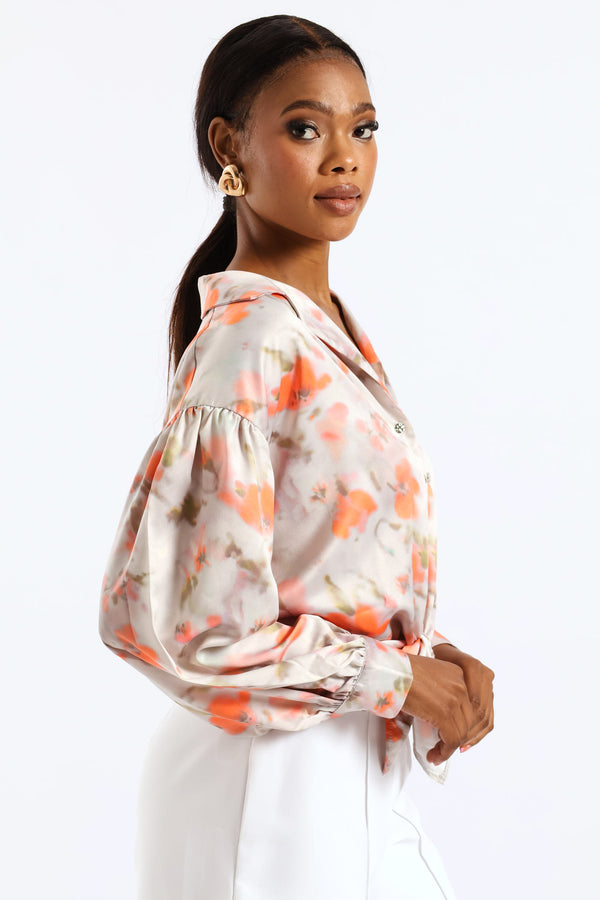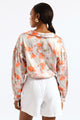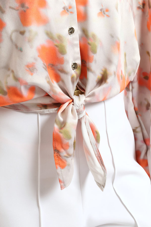 Long Sleeve Cropped Tie Front Detail Shirt - Floral
