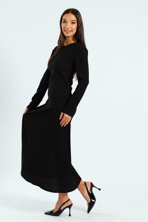 Elevate your wardrobe with this sophisticated Long Sleeve Flared Maxi Dress in timeless black. The graceful flared silhouette creates an elegant movement while the full-length design offers versatile styling options for both formal occasions and elevated everyday wear. Crafted with attention to detail, this maxi dress combines contemporary elegance with enduring style.