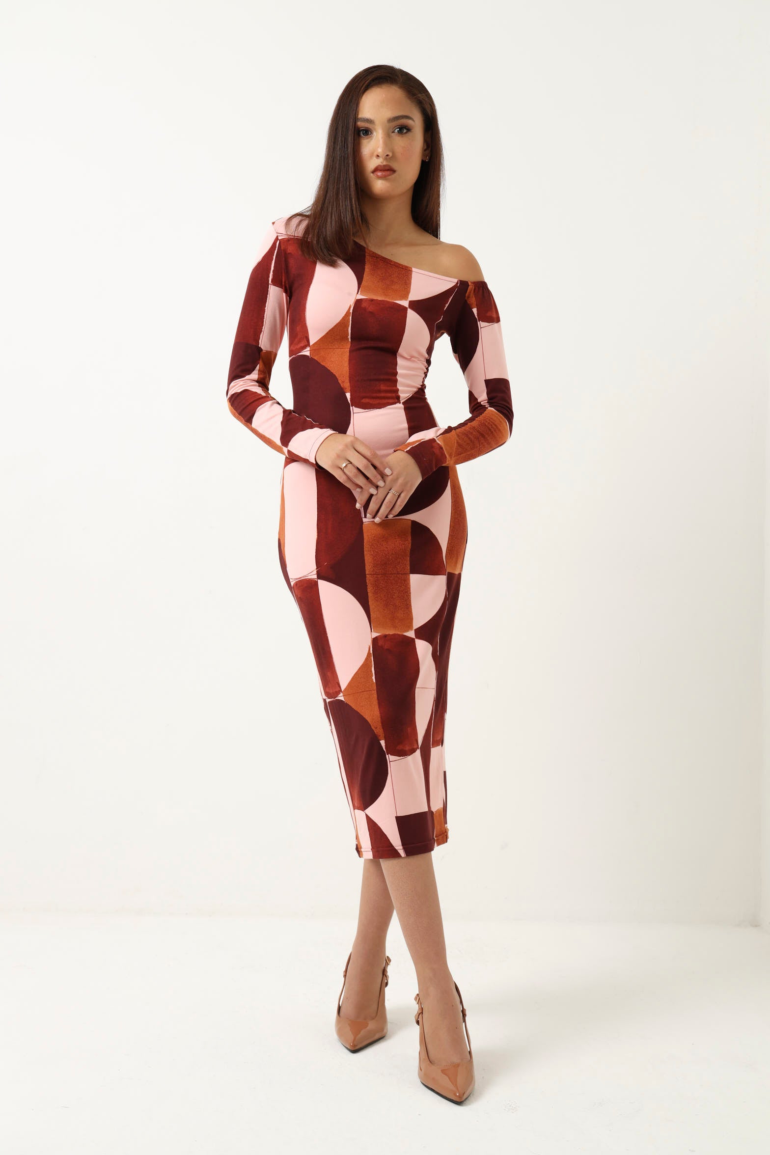 Effortlessly chic and versatile, this long sleeve off-shoulder printed midi dress combines contemporary style with timeless elegance. The flowing midi length flatters all silhouettes, while the off-shoulder neckline adds a touch of sophistication and femininity. Vibrant multi-colored prints bring visual interest and personality to your wardrobe. Perfect for casual outings, weekend brunches, or dressed up for evening occasions. The long sleeves provide coverage and comfort, making it ideal for layering or wearing year-round. A must-have piece that transitions seamlessly from day to night.