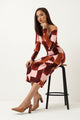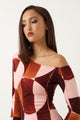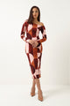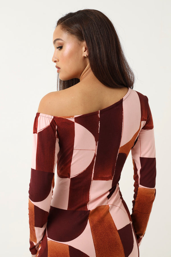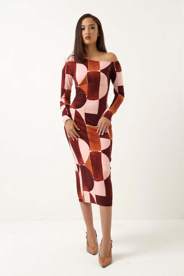 Long Sleeve Off Shoulder Printed Midi Dress - Multi