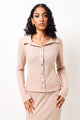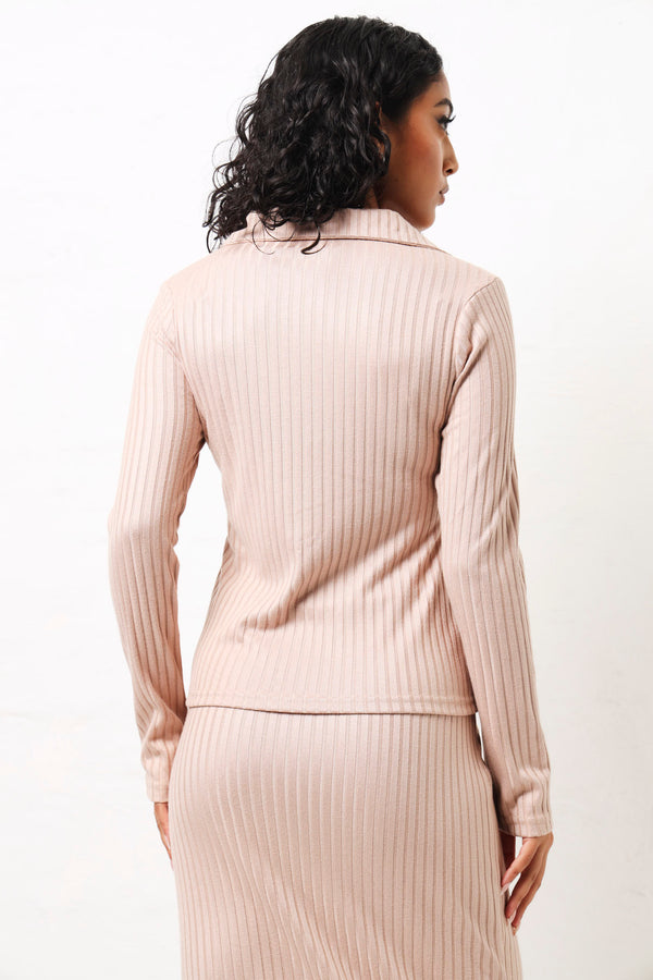 Long Sleeve Rib Button Through Shirt - Stone