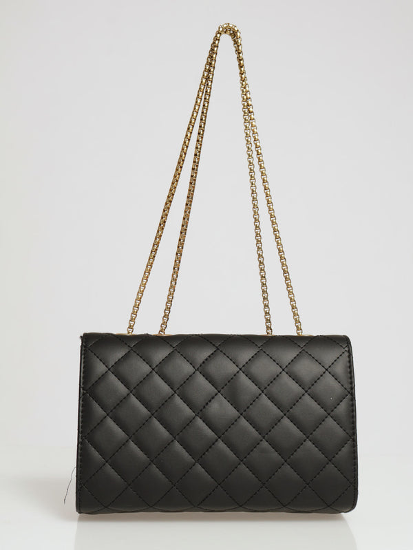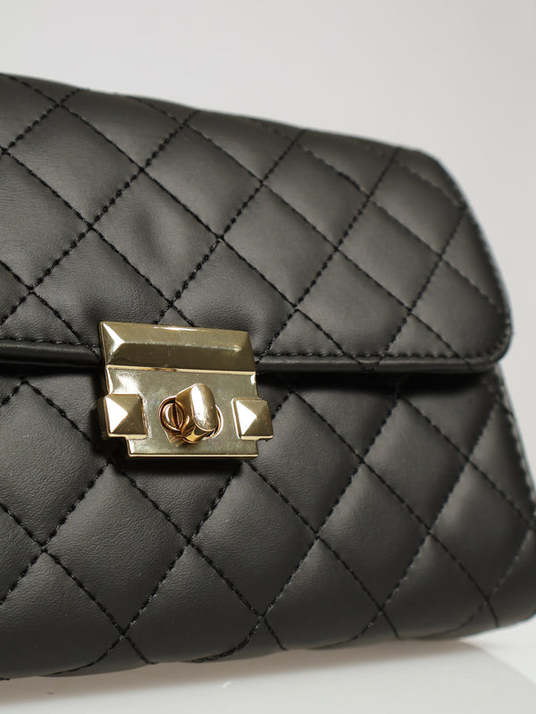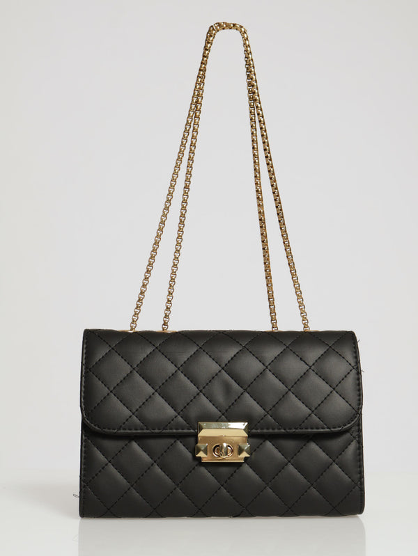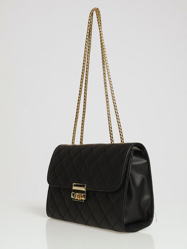 Matte Quilted Bag With Clasp Satchel - Black