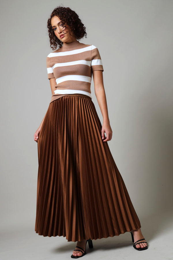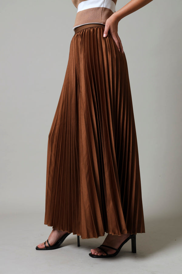 Maxi Elasticated Pleated Skirt - Dark Brown