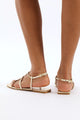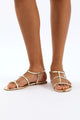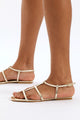 Strut your stuff with playful confidence in the Minimal Gladiator Mule Sandal in Gold. Its sleek, strappy design adds a flirty twist to any outfit, while the shiny gold finish keeps things bold and fun. Perfect for stepping out and standing out!