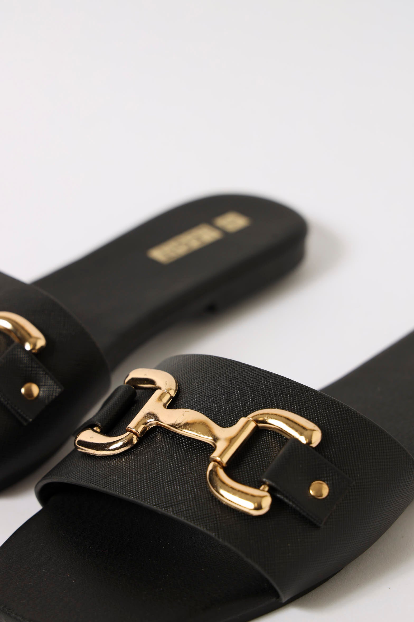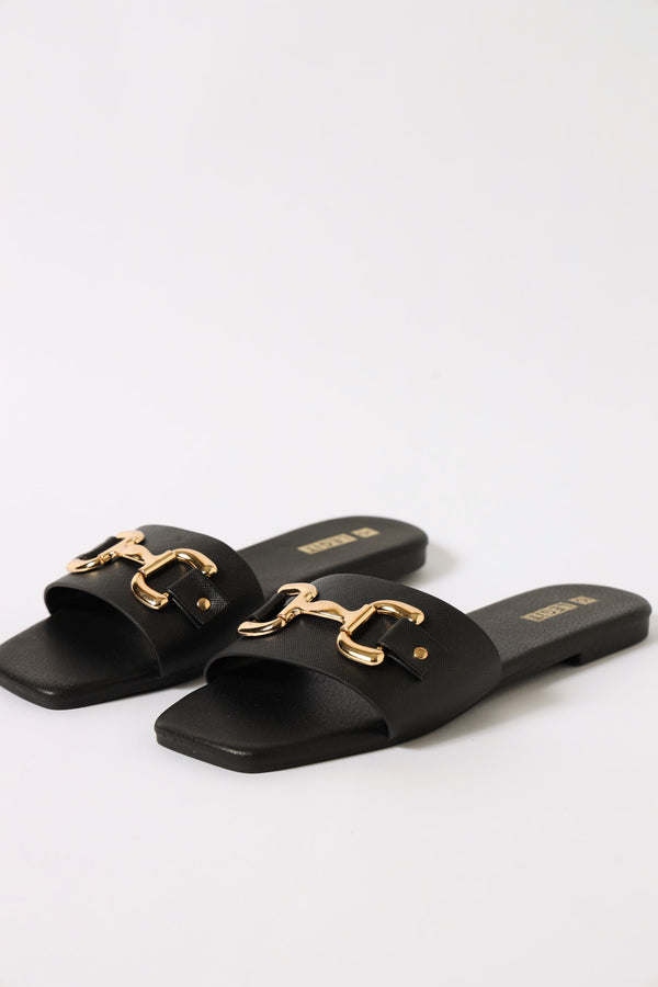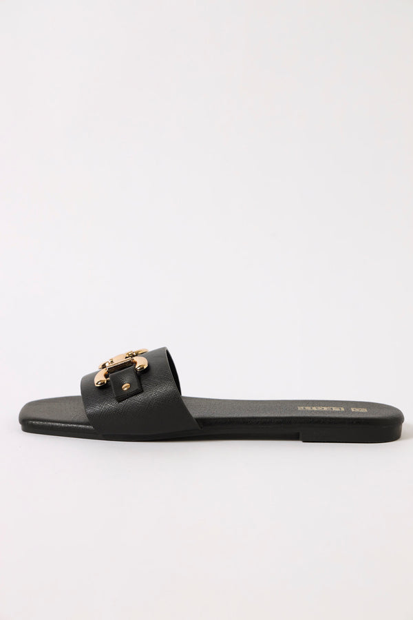 One Strap Chunky Matte Brushed Link Trim Sandal - Black
