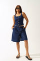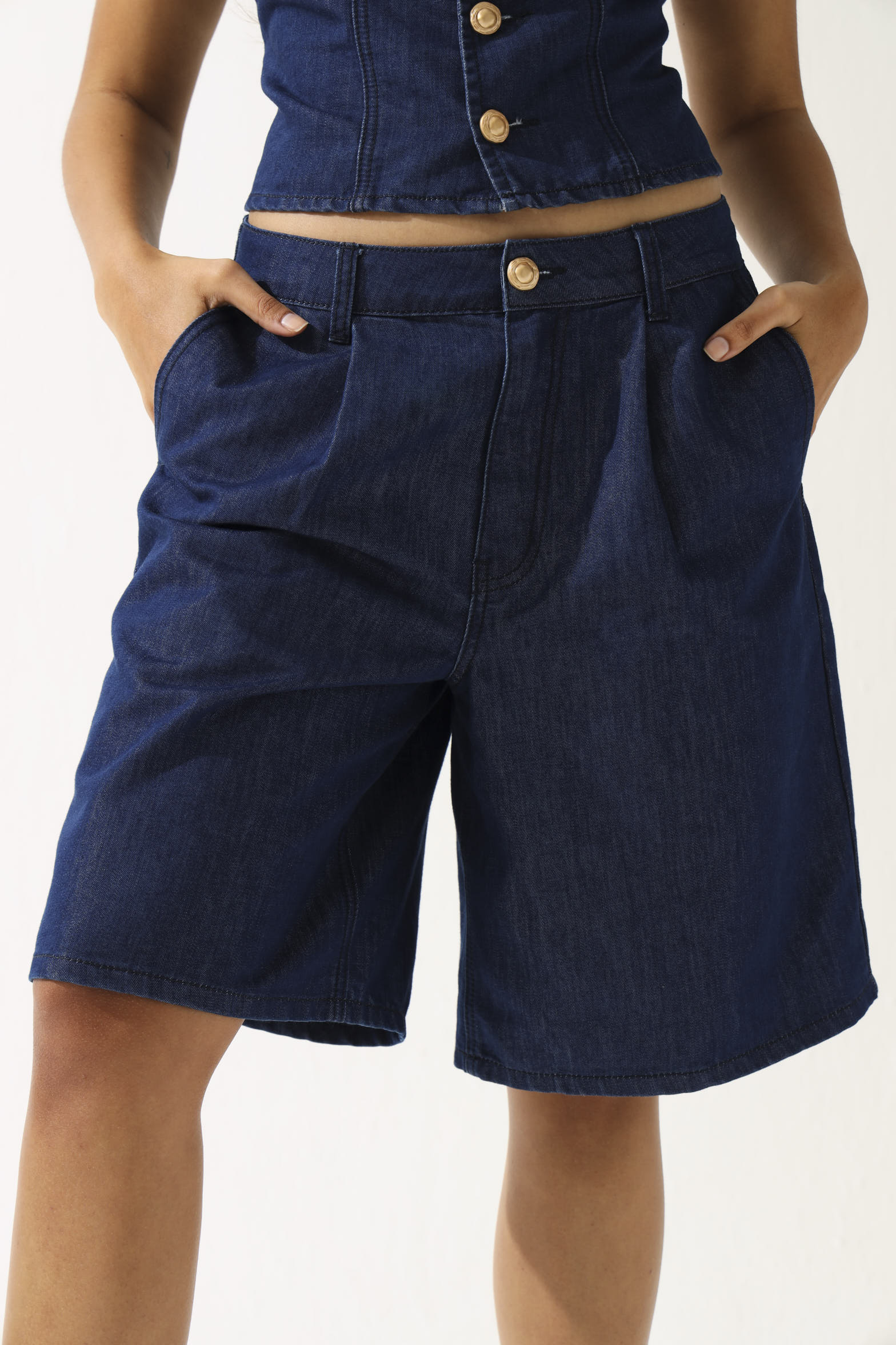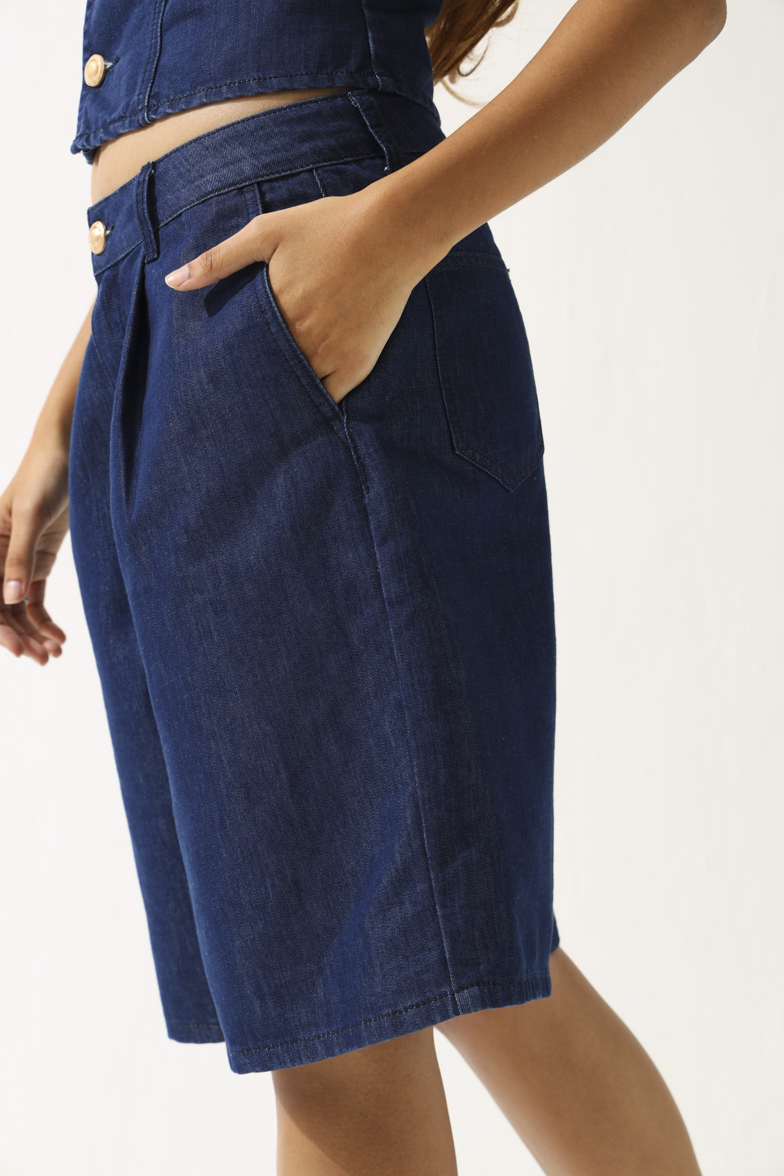 Meet your new warm-weather essential: Pleat Front Denim Bermuda Shorts in rich ink. The structured pleats at the front add a touch of sophistication that takes these shorts from casual to cleverly styled. Hitting right at the knee, they're the perfect length for showing off your vibe while keeping things comfy and cool. Pair them with sneakers for laid-back vibes or dress them up with a crisp top for something more polished. These shorts are your ticket to looking intentional and fabulous all season long.