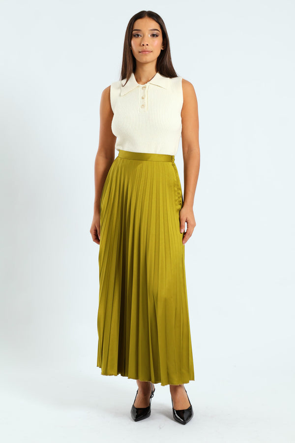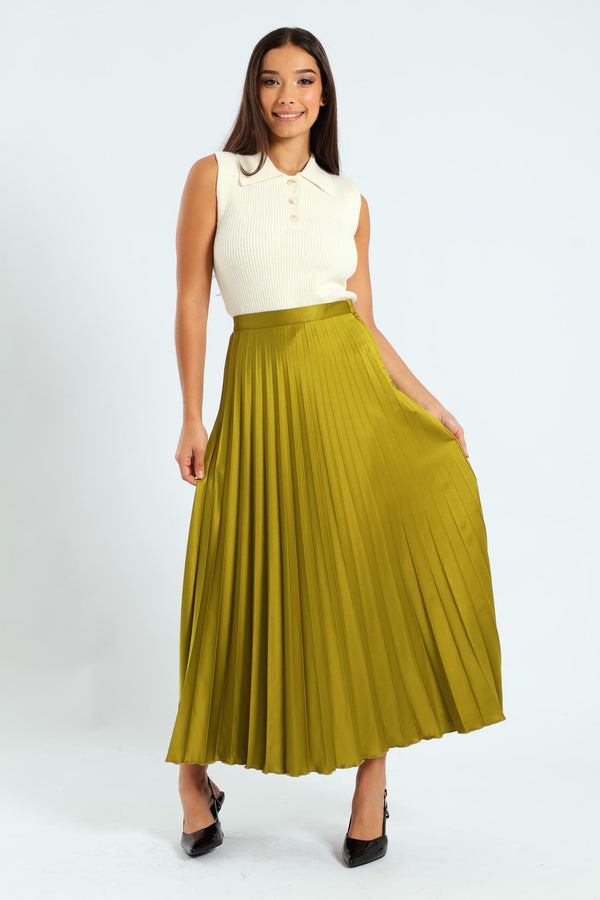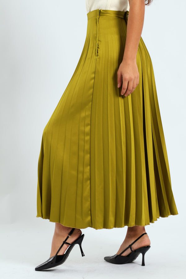 Indulge in luxury with our Pleated Skirt in Chartreuse. The delicate pleats effortlessly add movement to your outfit, while the vibrant chartreuse color will make you stand out from the crowd. The perfect piece for the sophisticated and exclusive individual.