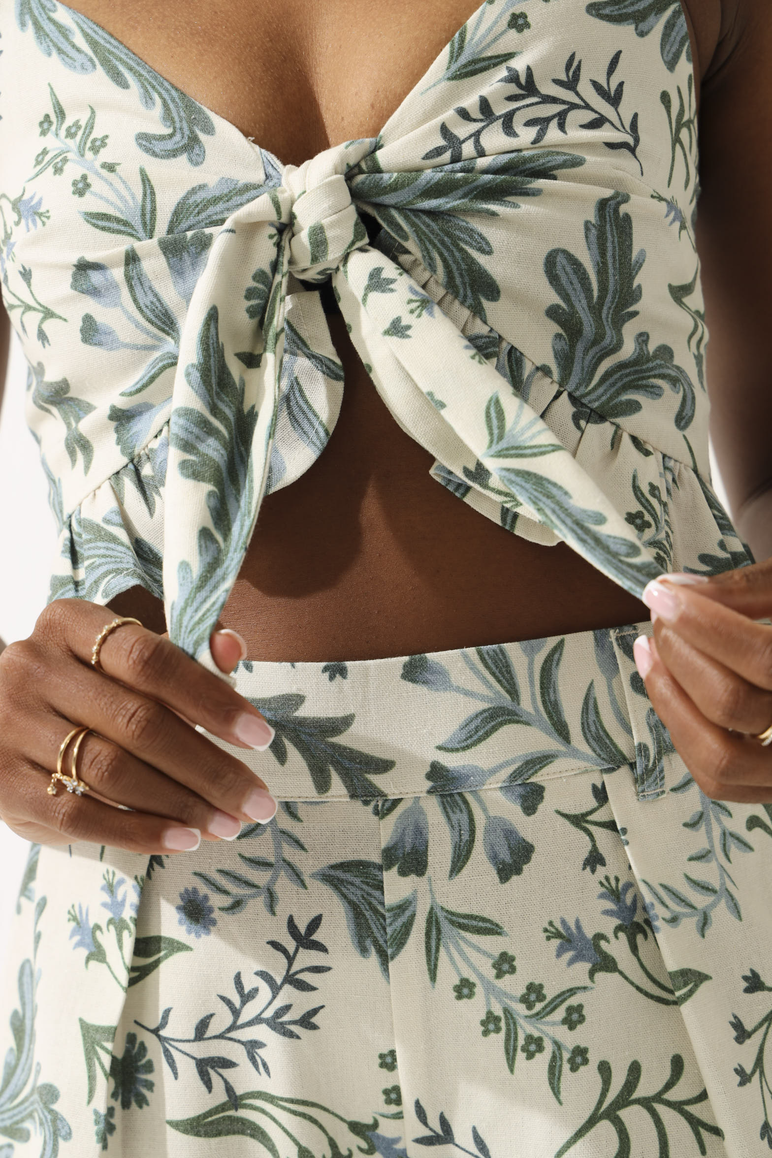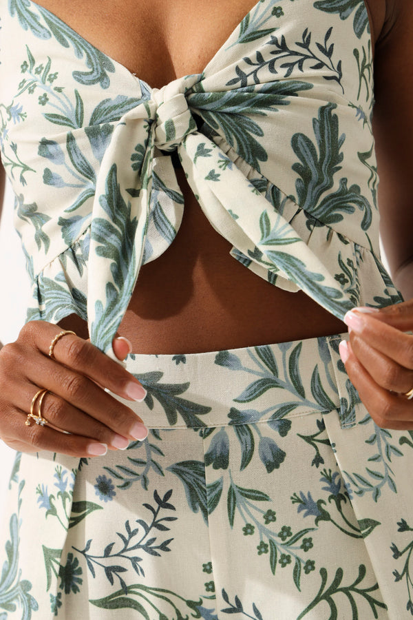 Printed Linen Look Bow Front Floral Top - Multi