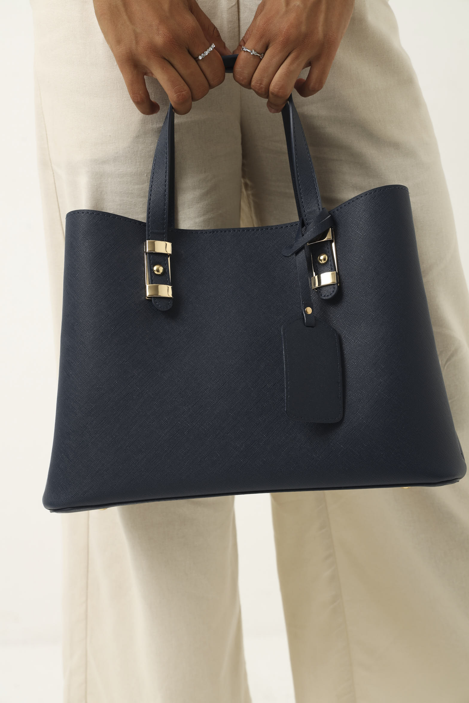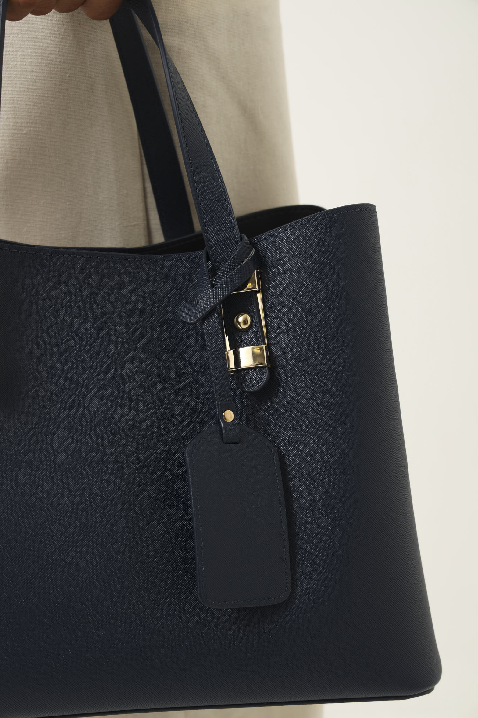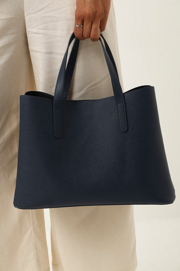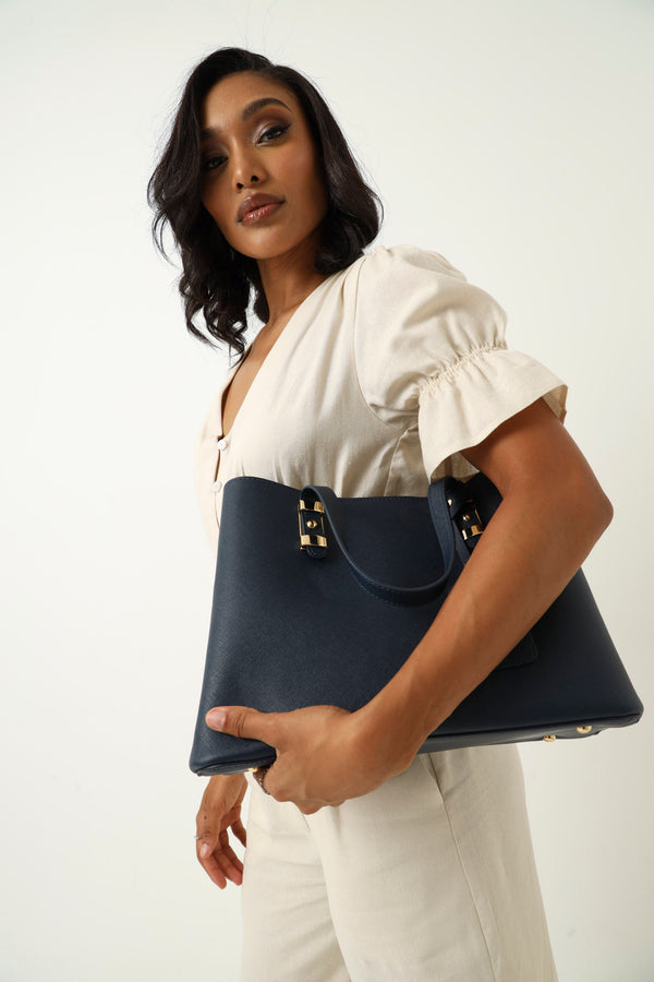 Pu Tab Detail Compartment Shopper - Navy