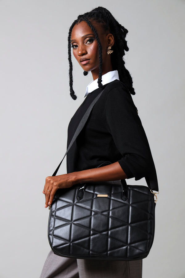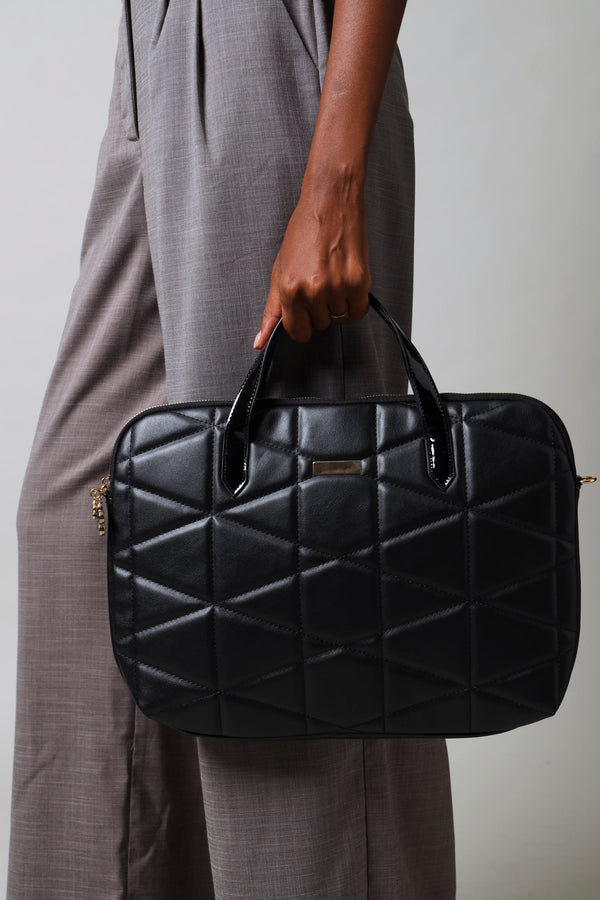 Quilted Canvas Strap Laptop Bag - Black