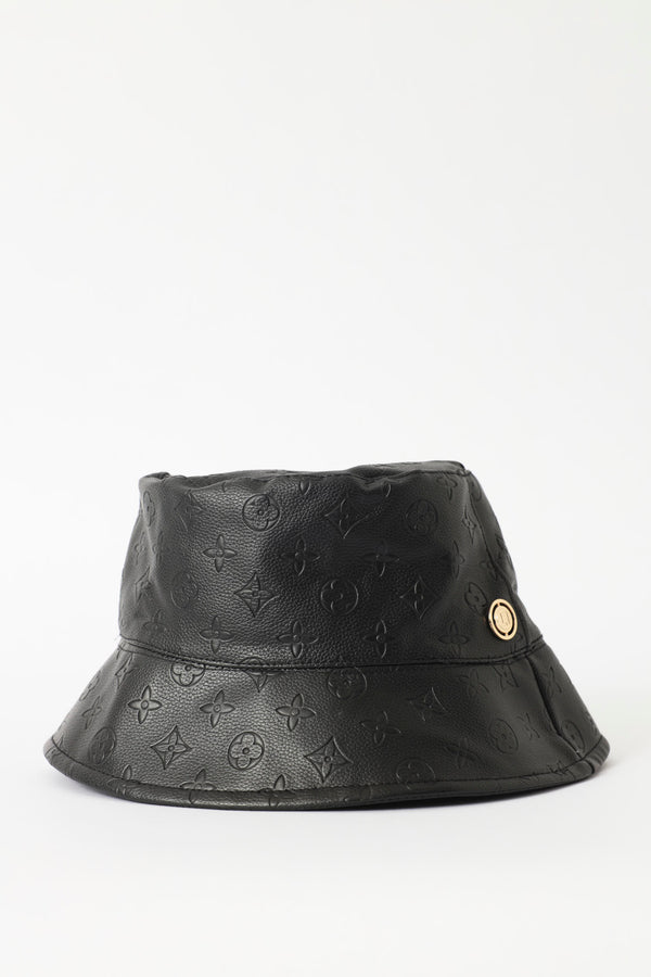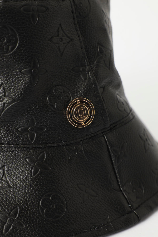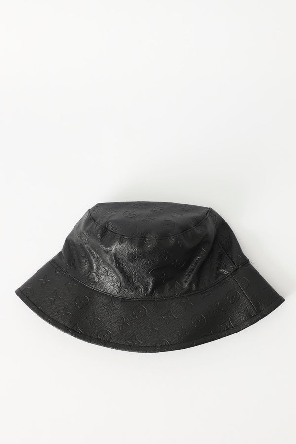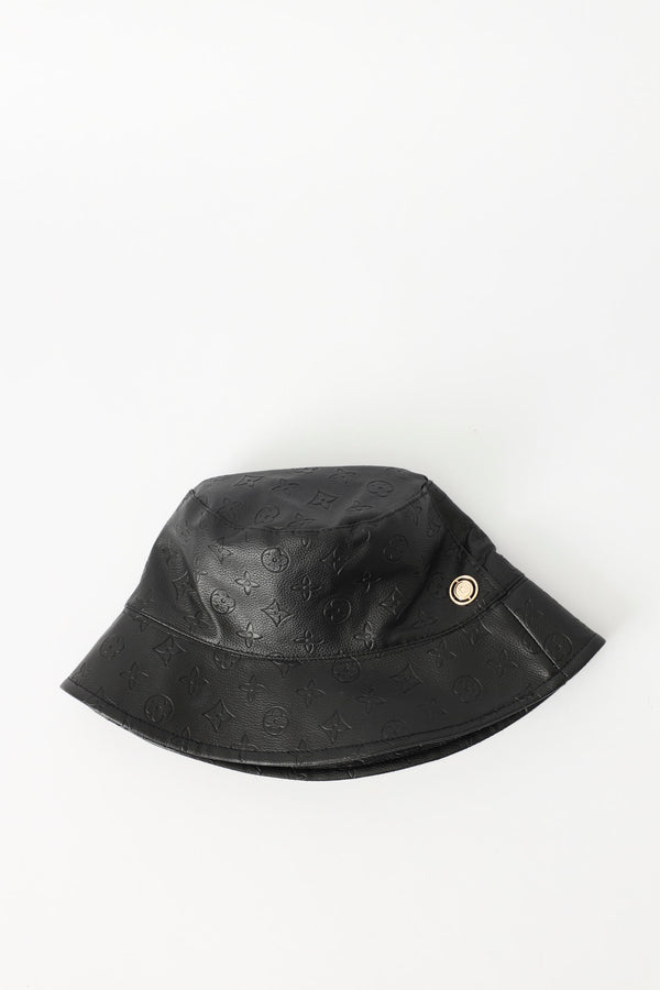 Reversible Embossed Pu Bucket Hat - Black