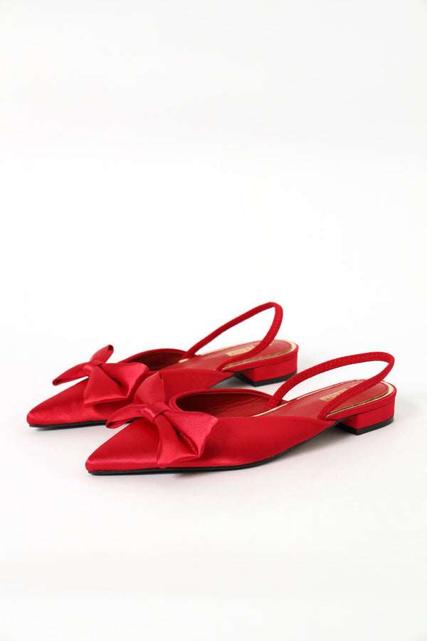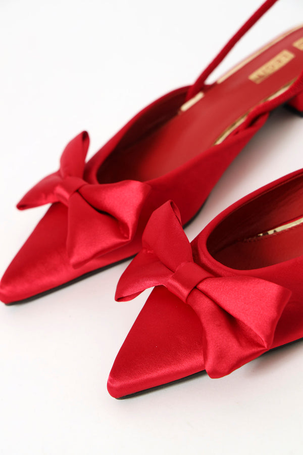 Satin Bow Slingback Pointy Pump - Red