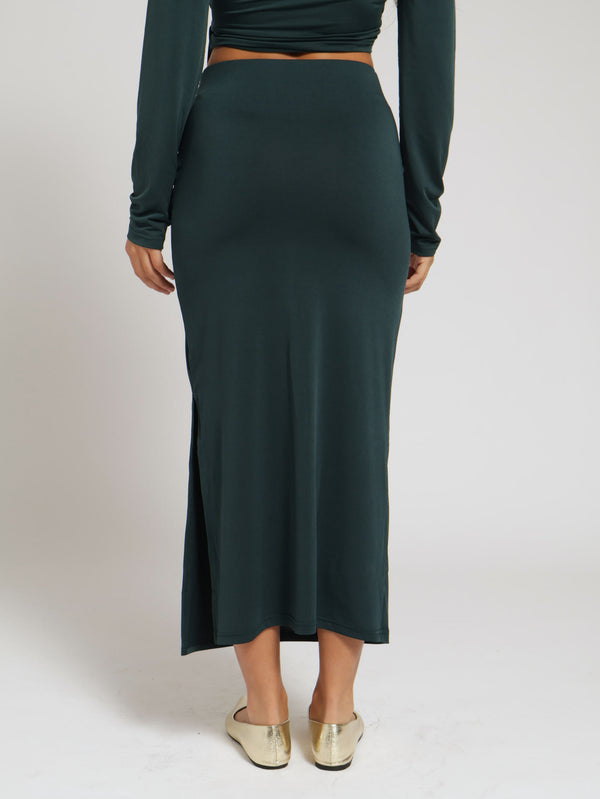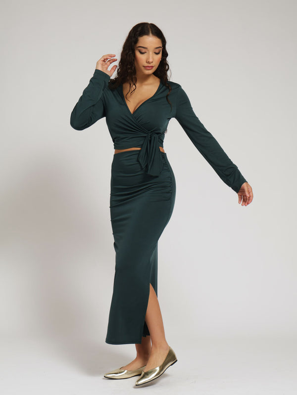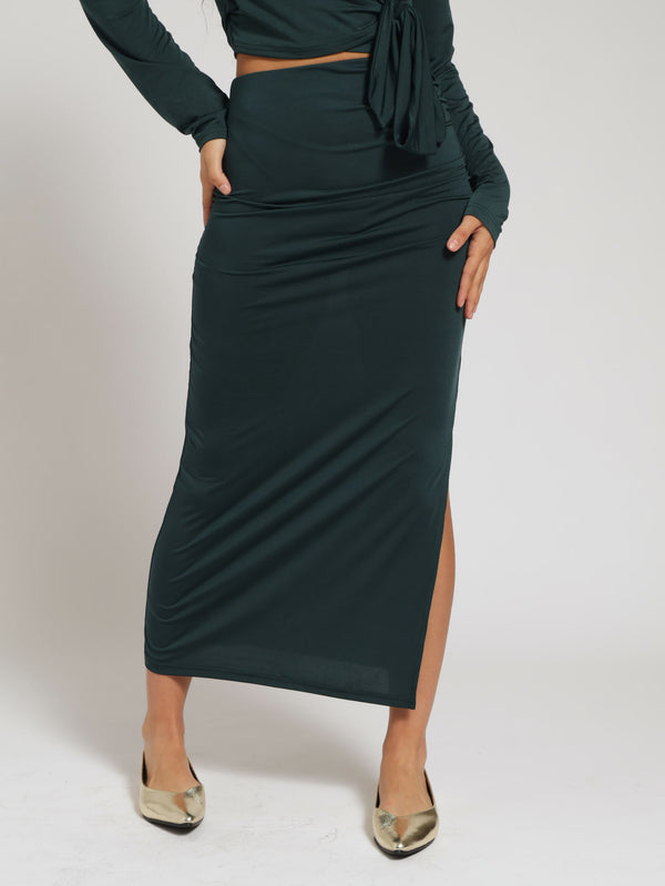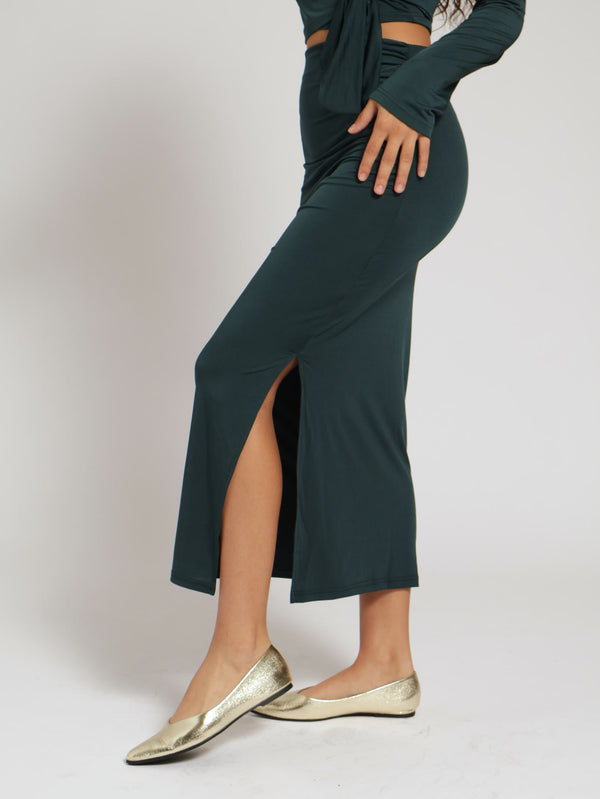 Side Gaugued Bodycon Slinky Skirt - Teal