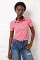 This Short Sleeve Brushed Rib Golfer in pink is your new wardrobe MVP casual enough for weekend rounds, polished enough to dress up for dinner. The soft brushed ribbed fabric feels incredible and adapts to whatever vibe you're going for, whether that's laid-back golf club casual or elevated evening style. One piece, endless possibilities now that's smart dressing with a playful twist.
