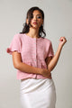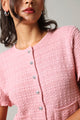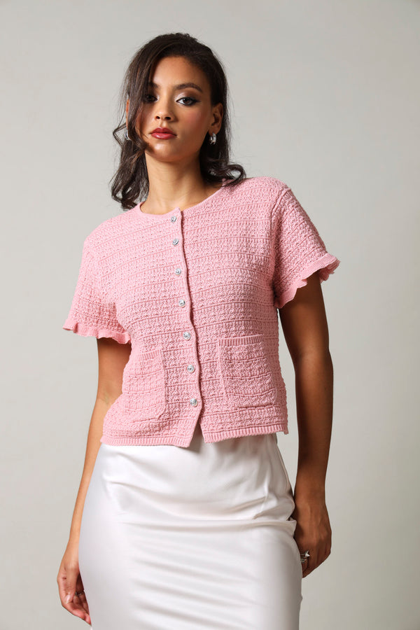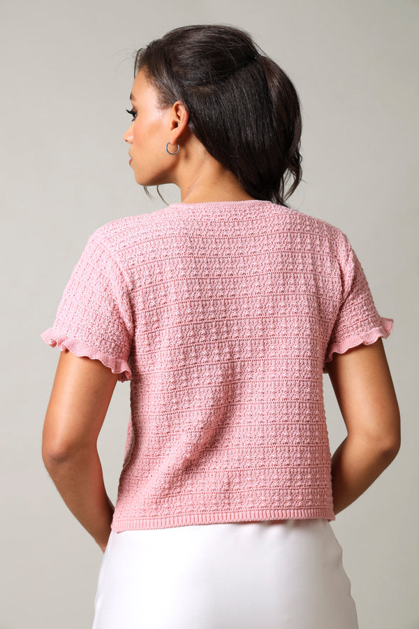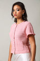 Short Sleeve Button Down Textured Top - Pink