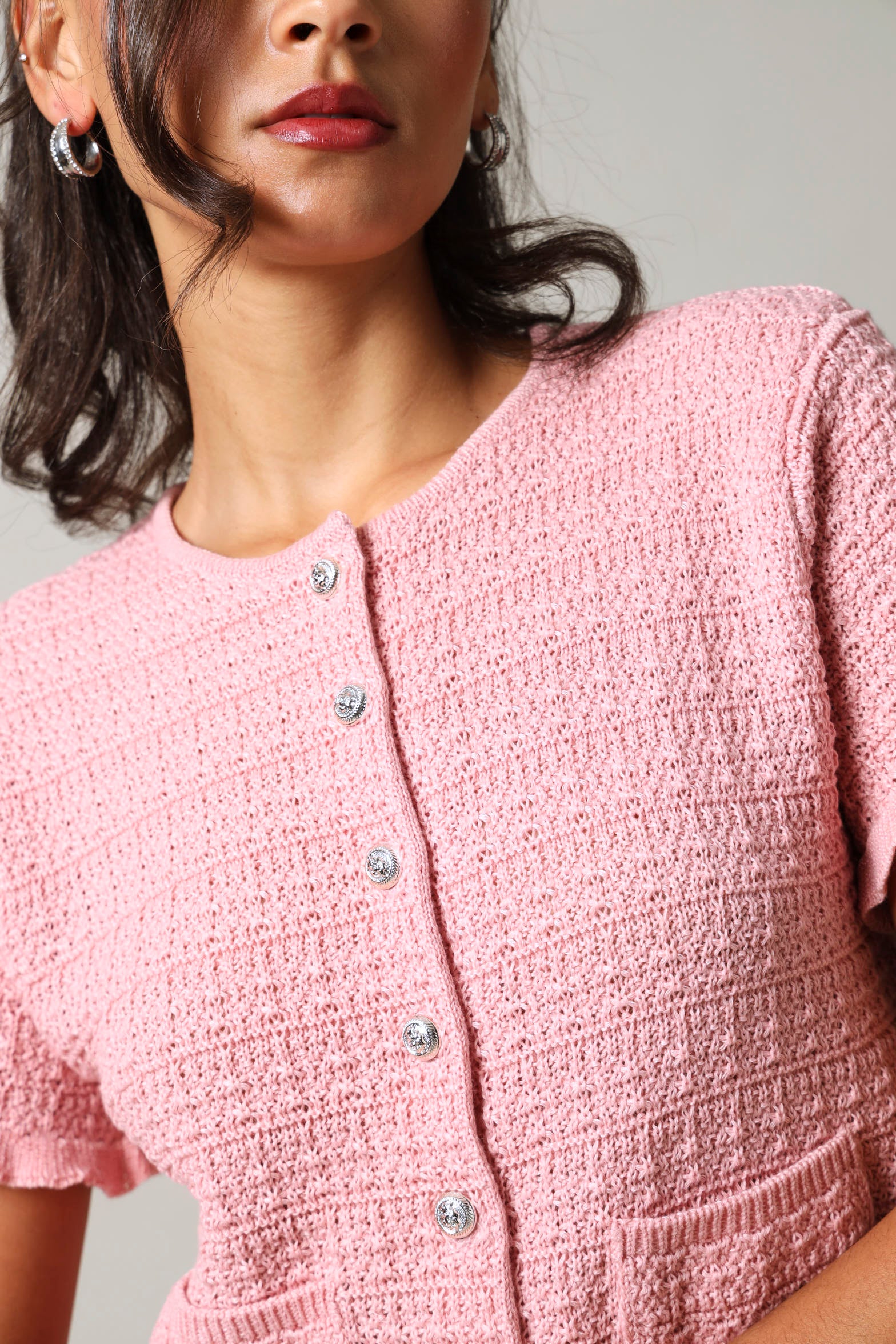 Effortless style meets everyday comfort in this short sleeve button down top. The textured fabric adds visual interest and dimension, while the classic button front design offers versatile layering options. Perfect for casual outings, office settings, or weekend wear. The soft pink hue complements any wardrobe and pairs easily with jeans, trousers, or skirts. A timeless piece that transitions seamlessly from day to night.