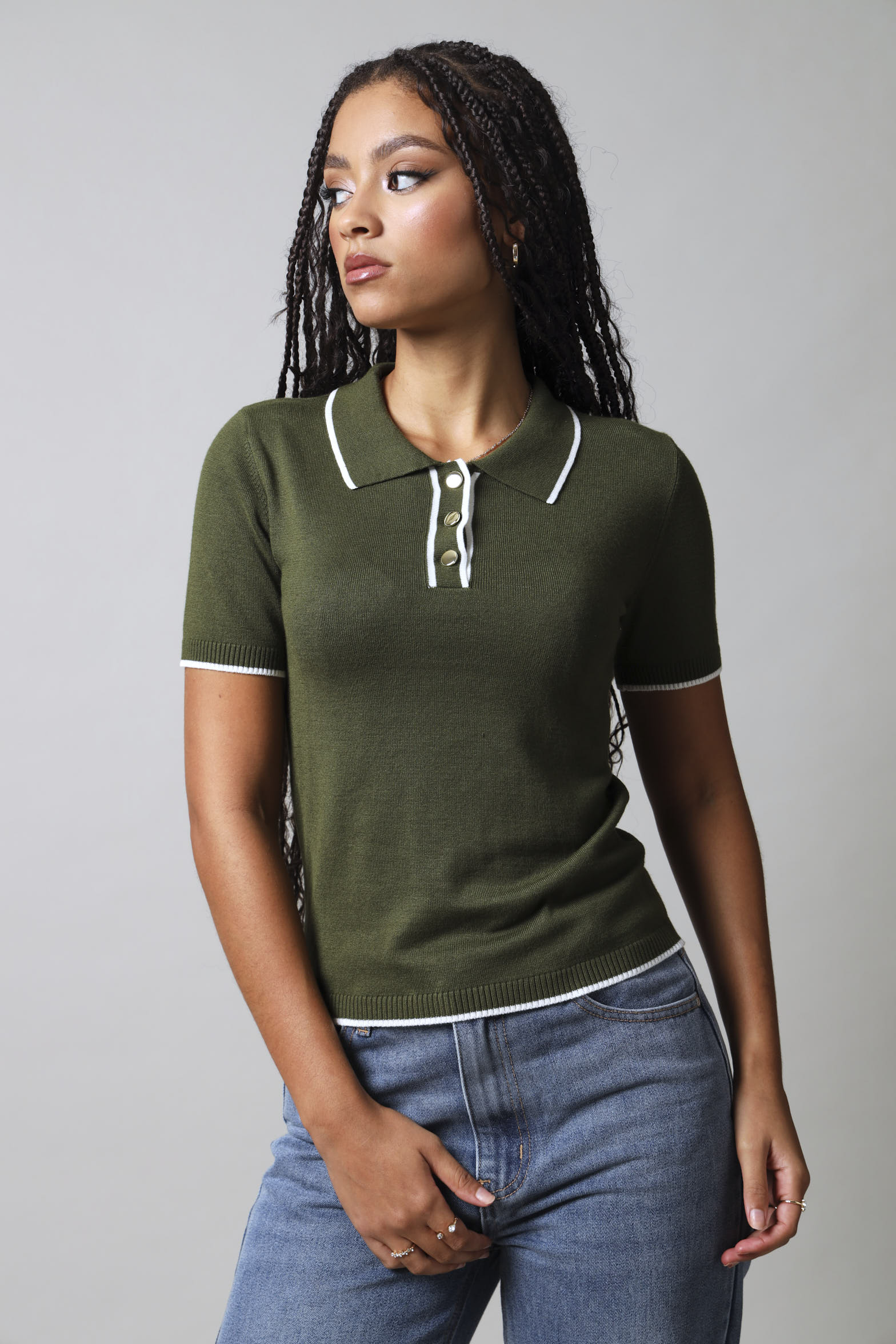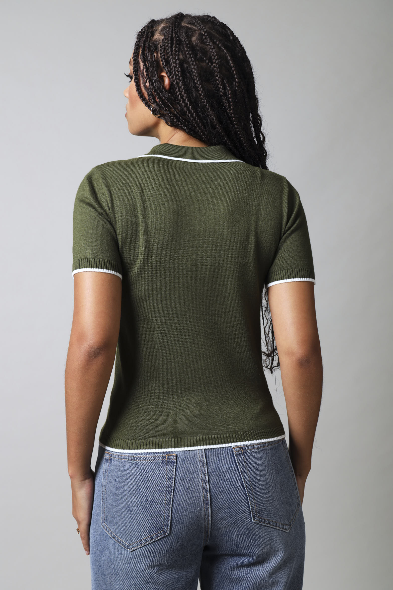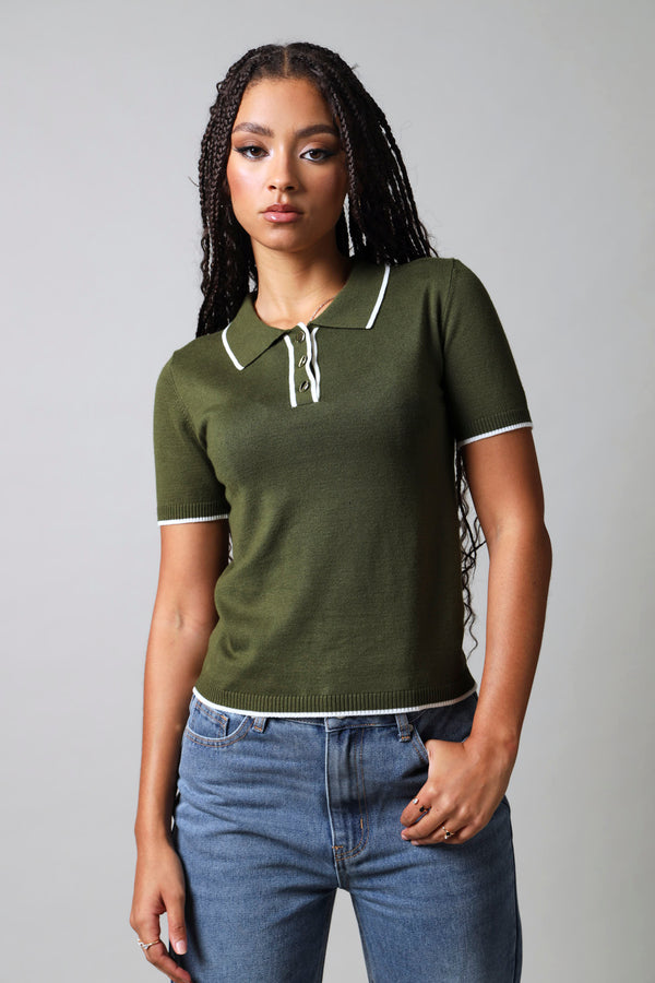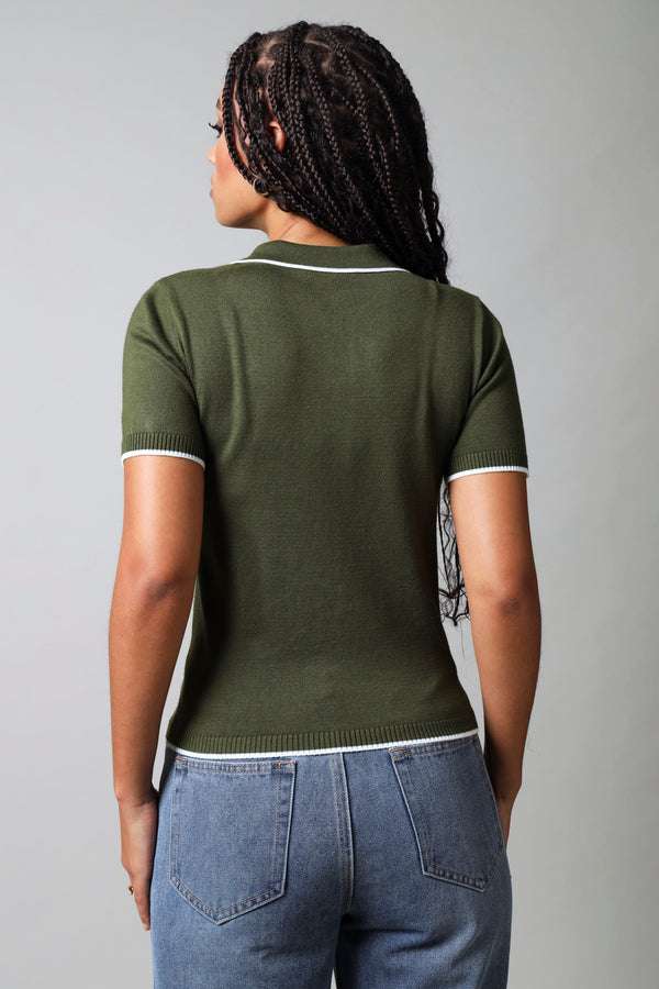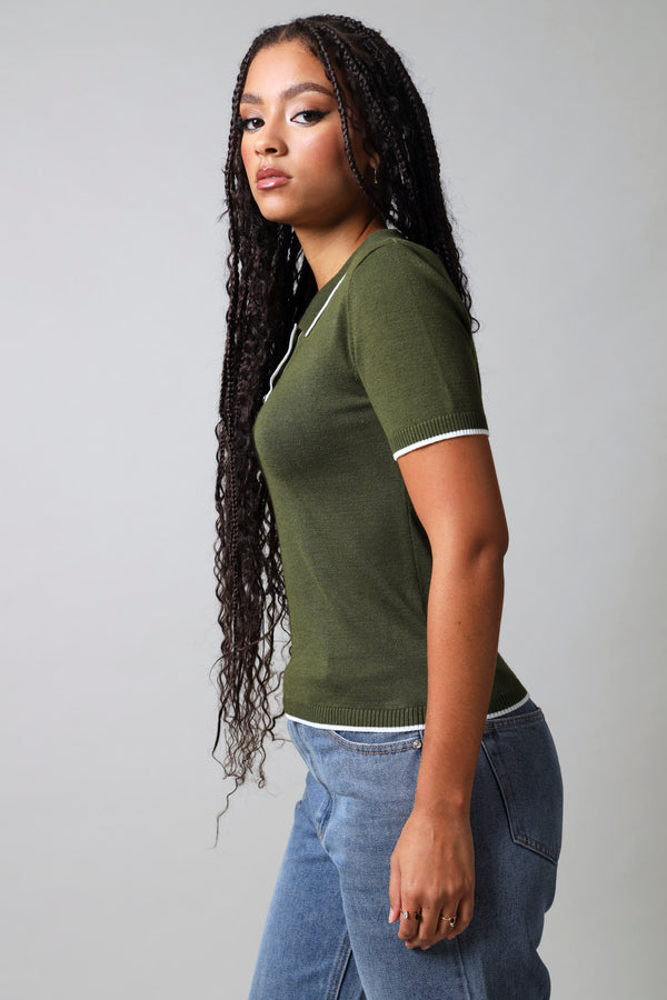 Short Sleeve Golfer With Contrast Detail - Fatigue