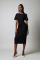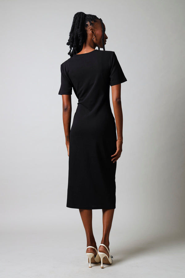 Short Sleeve Side Tie Bodycon Dress - Black