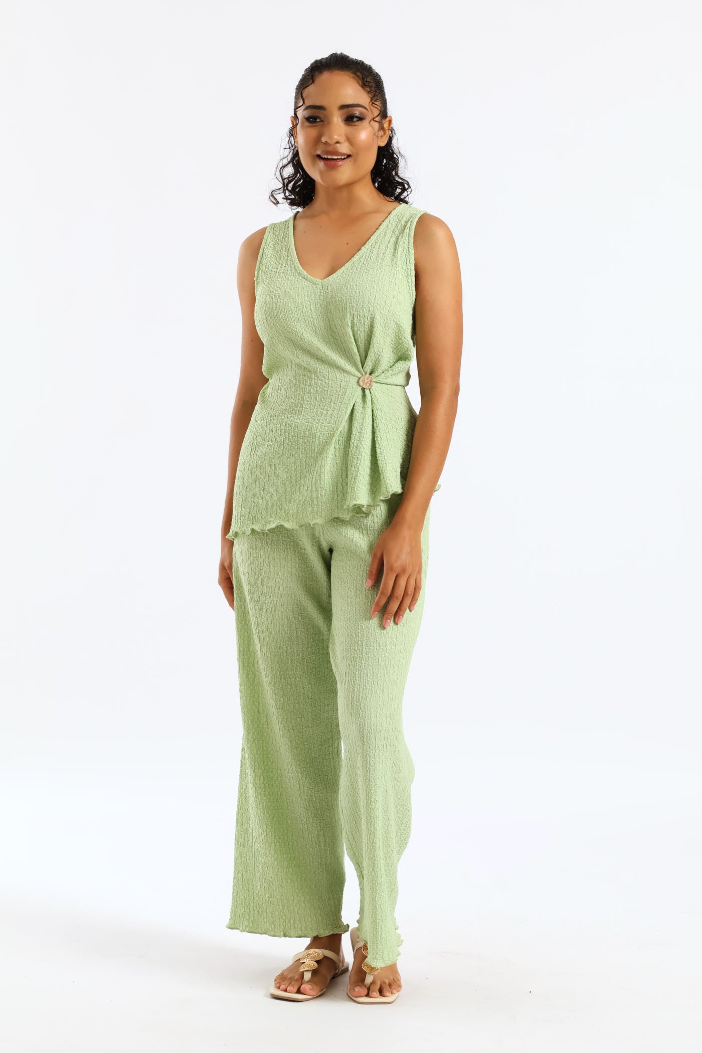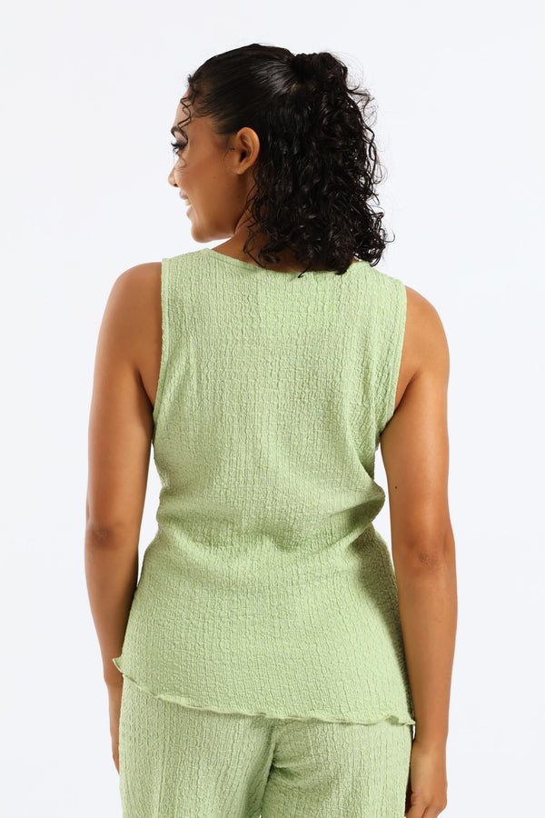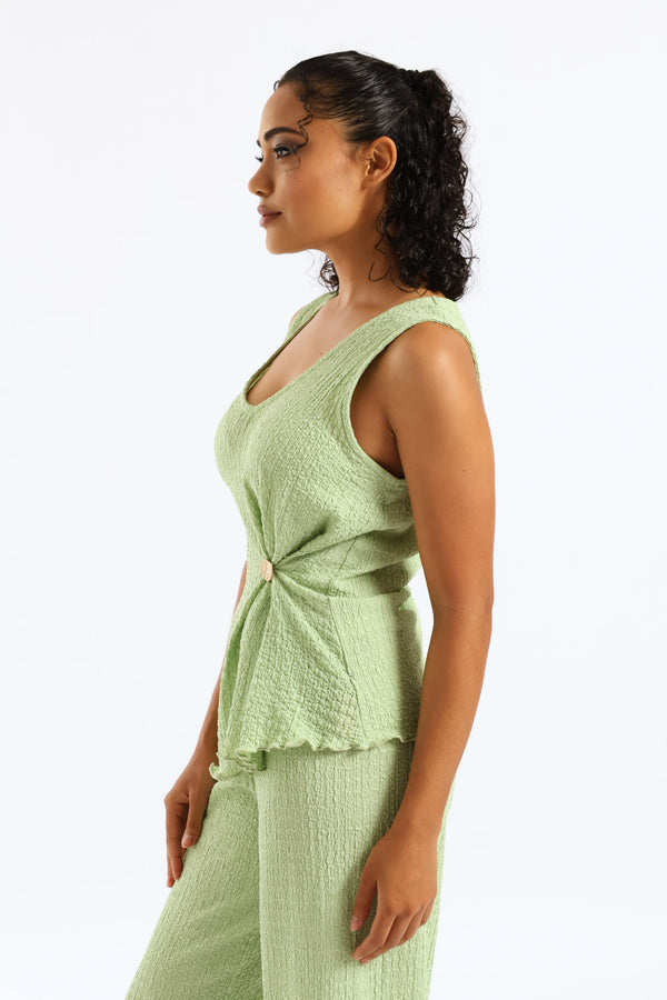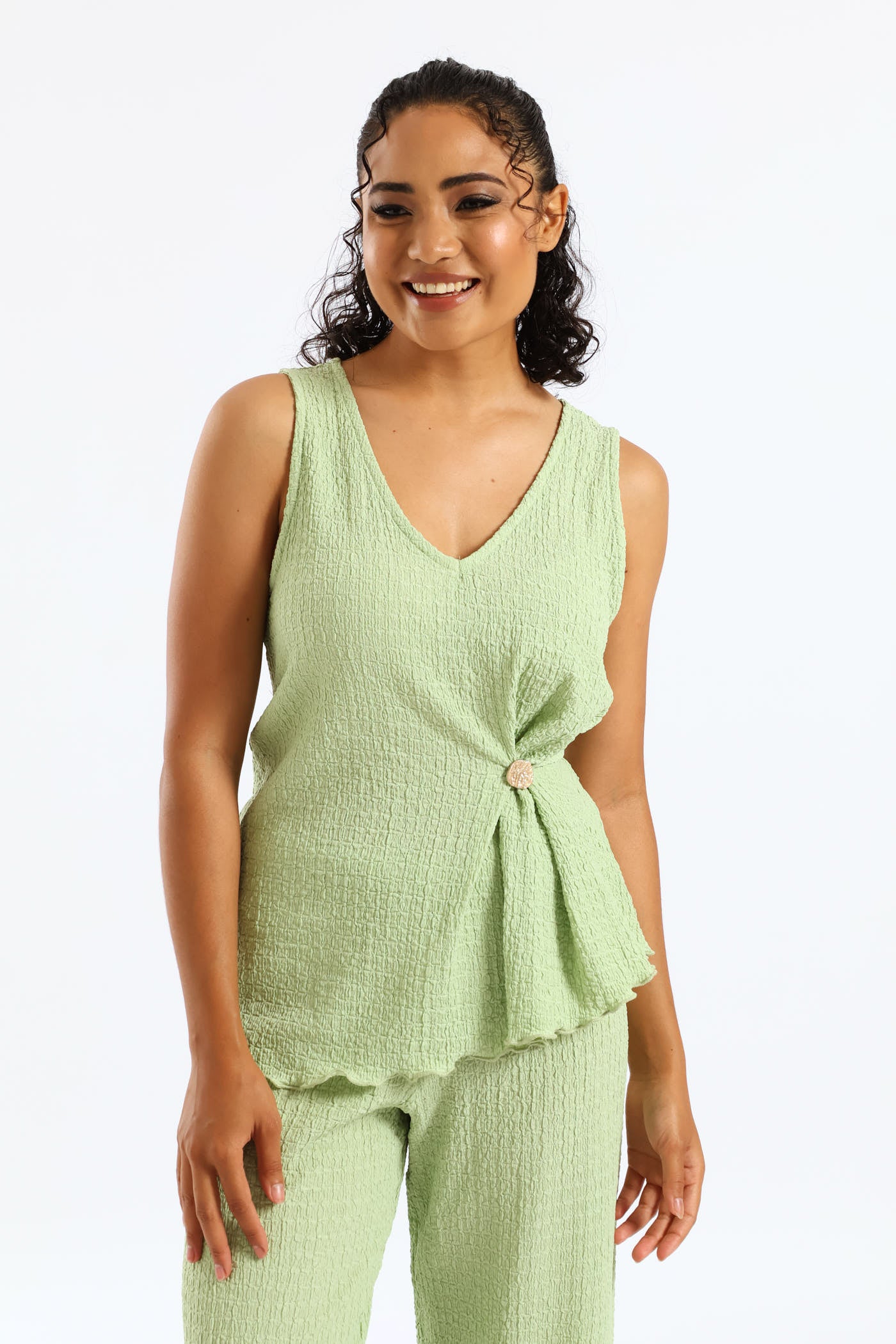Sleeveless Asymetrical Gold Trim Cami - Mint
