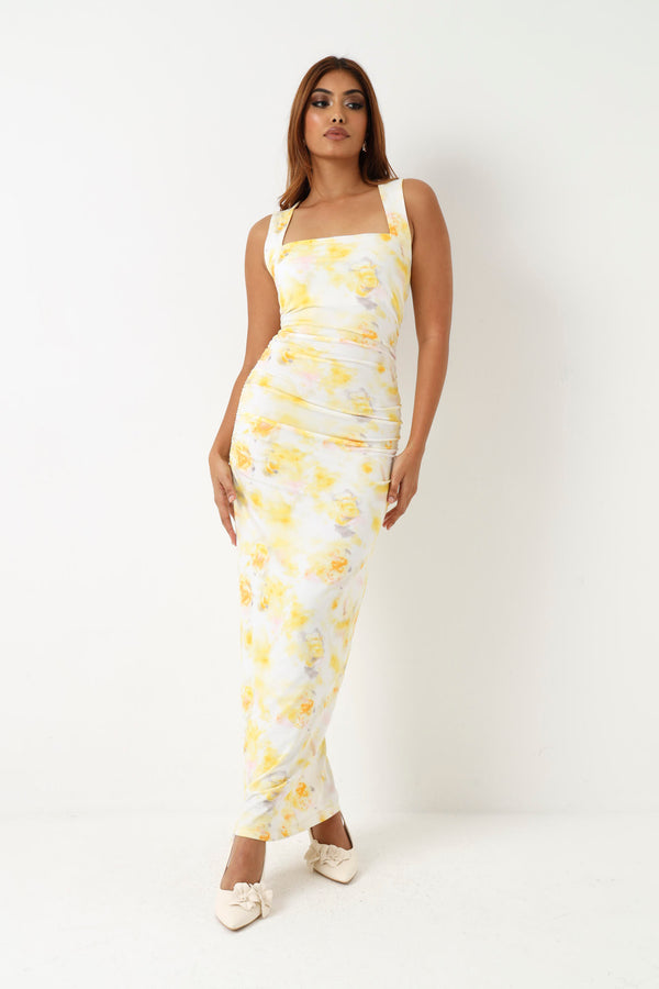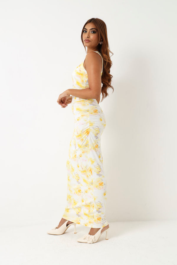 Sleeveless Floral Midi Dress - Yellow