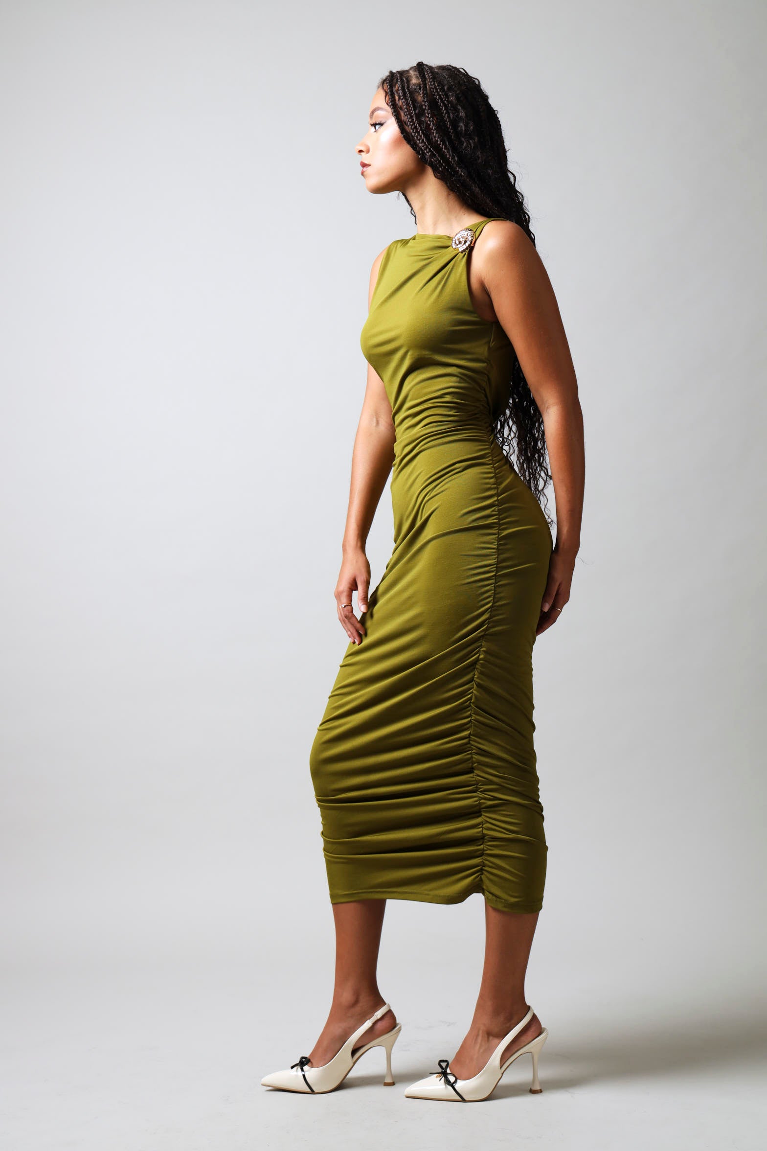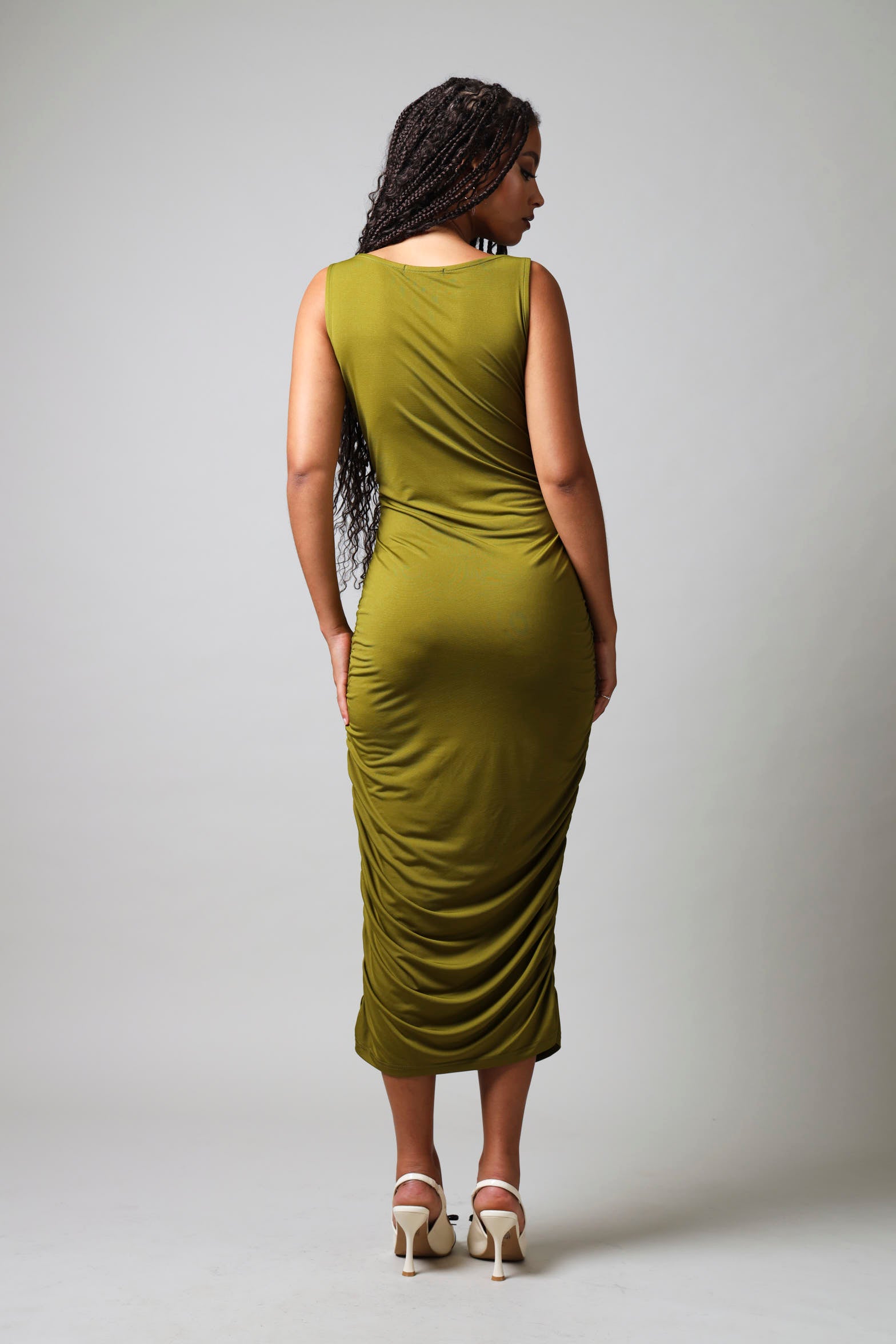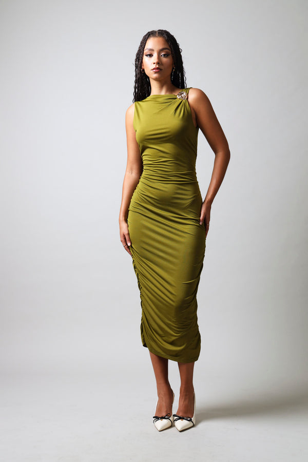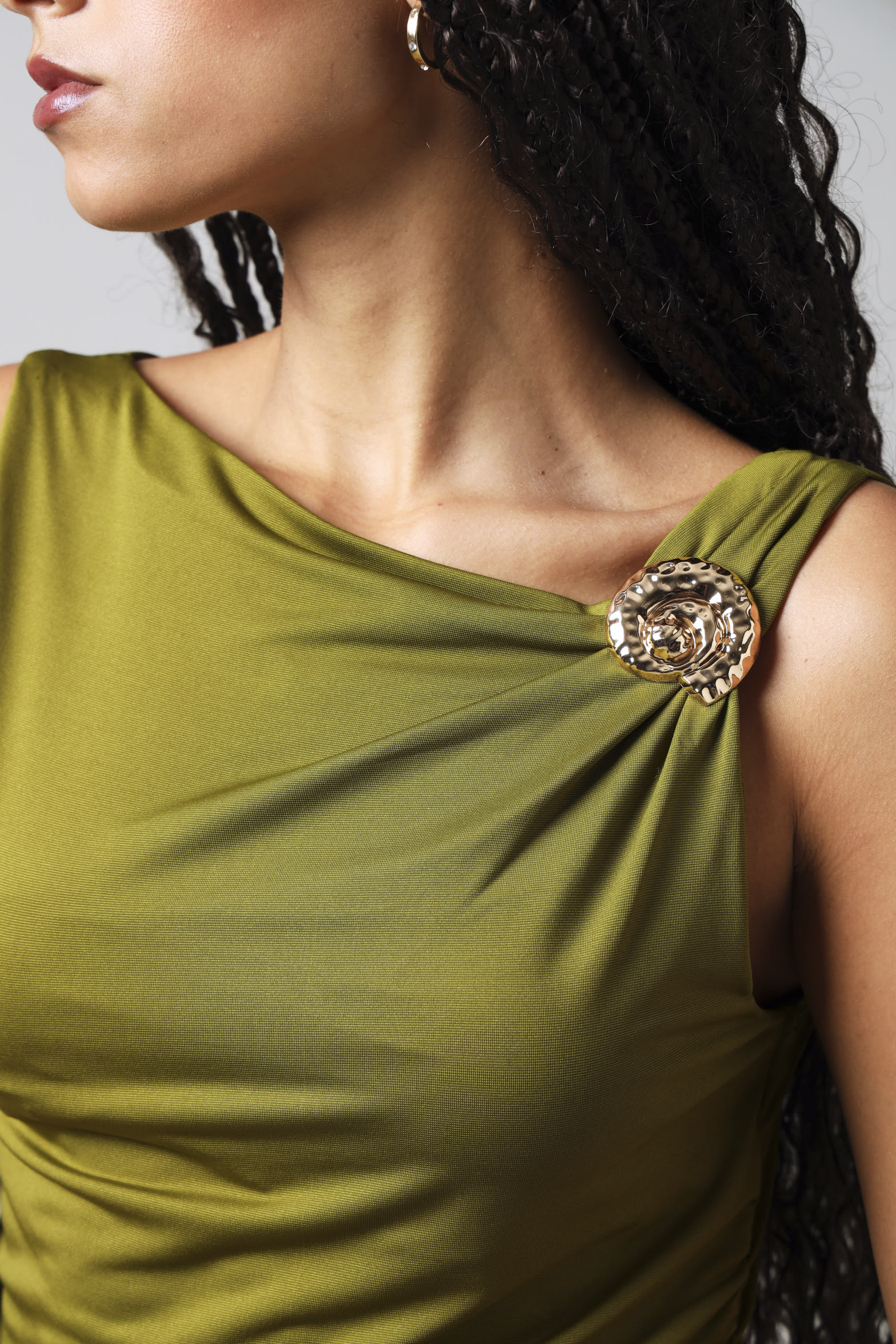 Effortless elegance meets contemporary style with this sleeveless slinky dress in rich green. The fluid fabric drapes beautifully against the body, while refined trim detailing adds a polished finishing touch. Perfect for evening occasions or elevated casual wear, this versatile piece transitions seamlessly from day to night. The minimalist silhouette and luxurious fabric create a timeless look that flatters and inspires confidence.