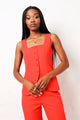 Make a bold statement with this orange sleeveless waistcoat, featuring a distinctive square neckline that adds contemporary flair to any ensemble. The tailored construction offers a refined silhouette suitable for professional settings and upscale social events alike. Layer effortlessly over dresses, shirts, or knitwear to create sophisticated, multi-dimensional outfits. A versatile investment piece that brings warmth and dimension to your collection.
