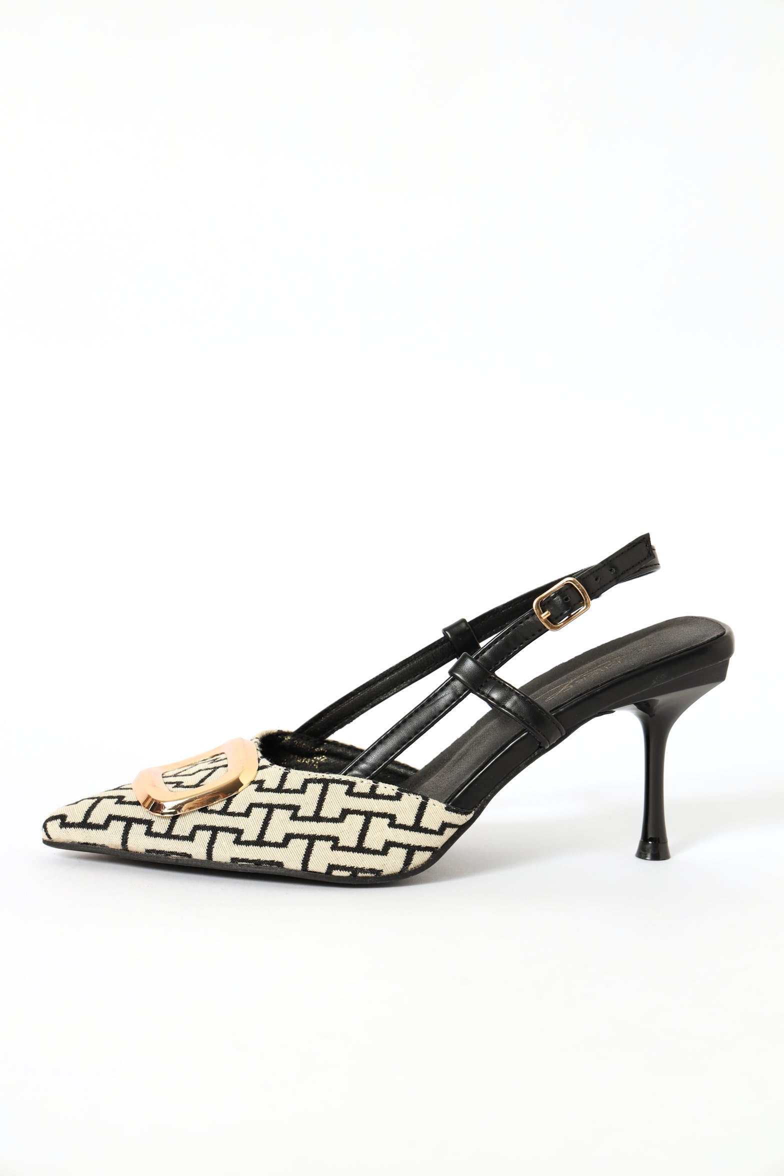 Elevate your footwear collection with this impeccably crafted slingback heel. The sharp pointed toe delivers a streamlined silhouette, whilst the monogram accent introduces a layer of refined personality. Its multi-coloured design offers exceptional versatility, effortlessly transitioning from corporate environments to evening affairs. The secure slingback fastening provides dependable support and comfort throughout your day, making this an essential staple for those who demand both elegance and practicality in their wardrobe choices.