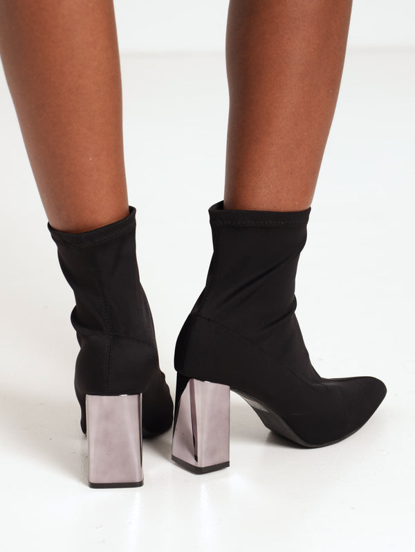 Sock Boot On Metallic Block Heel - Black