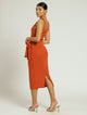 Square Neck Metallic Knit Side Tie Dress - Rust