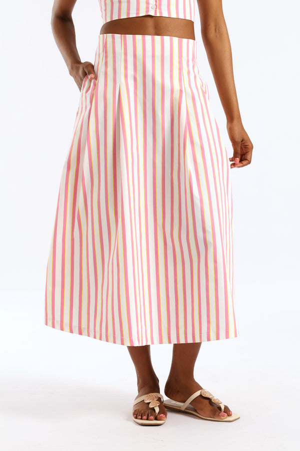 Add a pop of fun to your wardrobe with this Striped Flared Midi Skirt. Its vibrant multi-color stripes and playful flare create a lively, twirl-worthy look perfect for sunny days or casual outings. Lightweight and breezy, it keeps you comfortable while turning heads wherever you go. Mix and match for endless cheerful style!