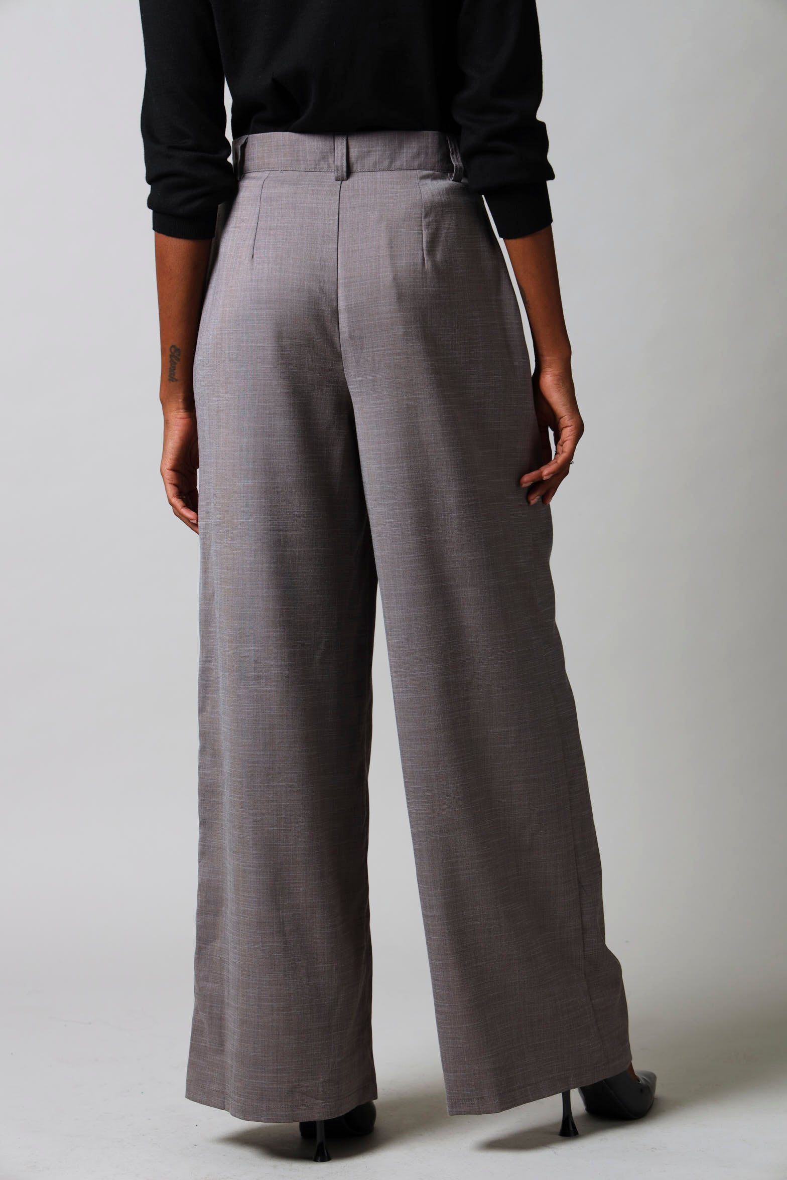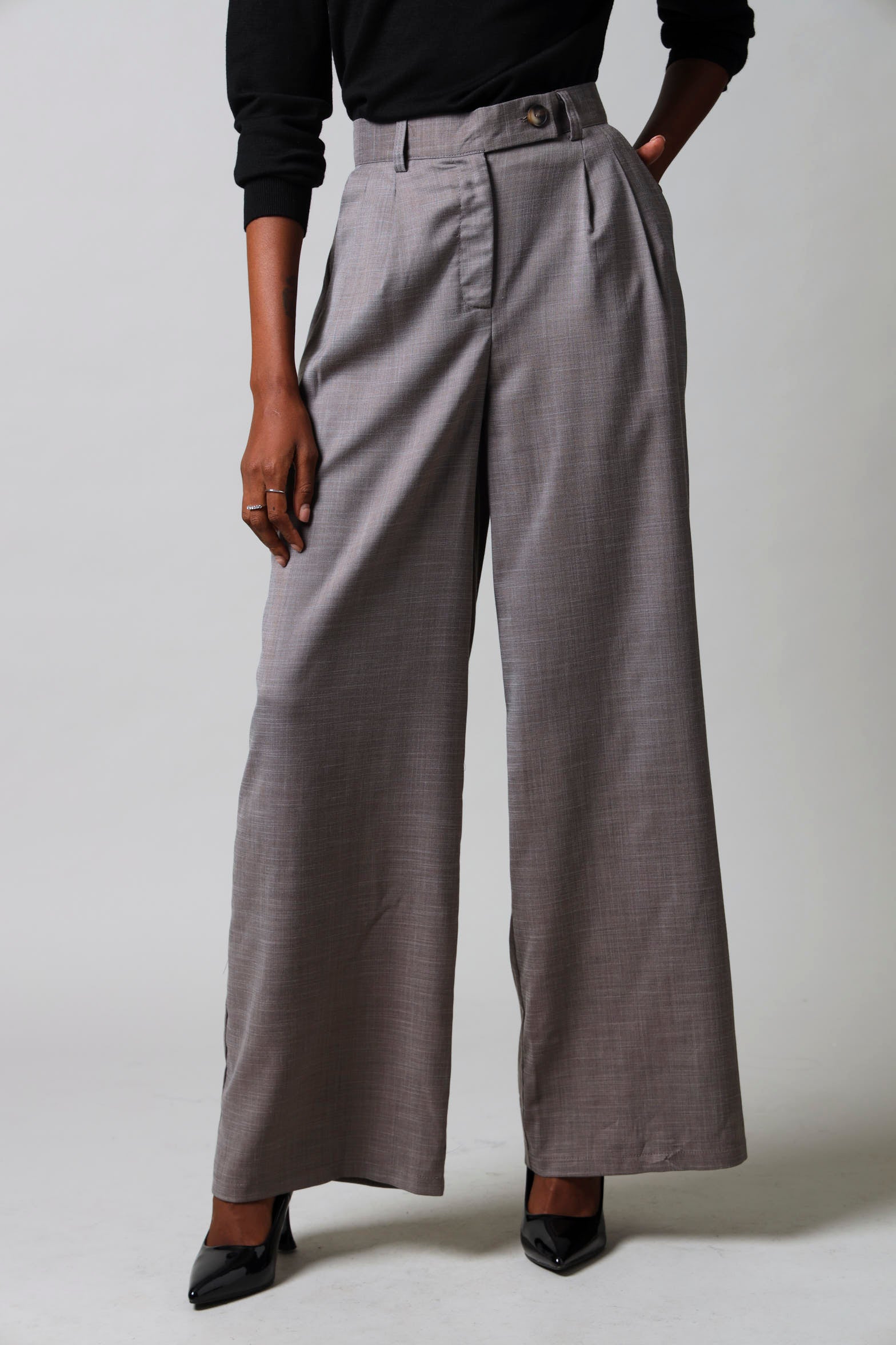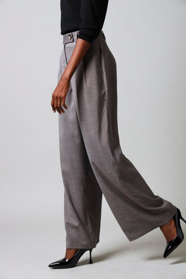 Tab Detail Wide Leg Pants - Brown