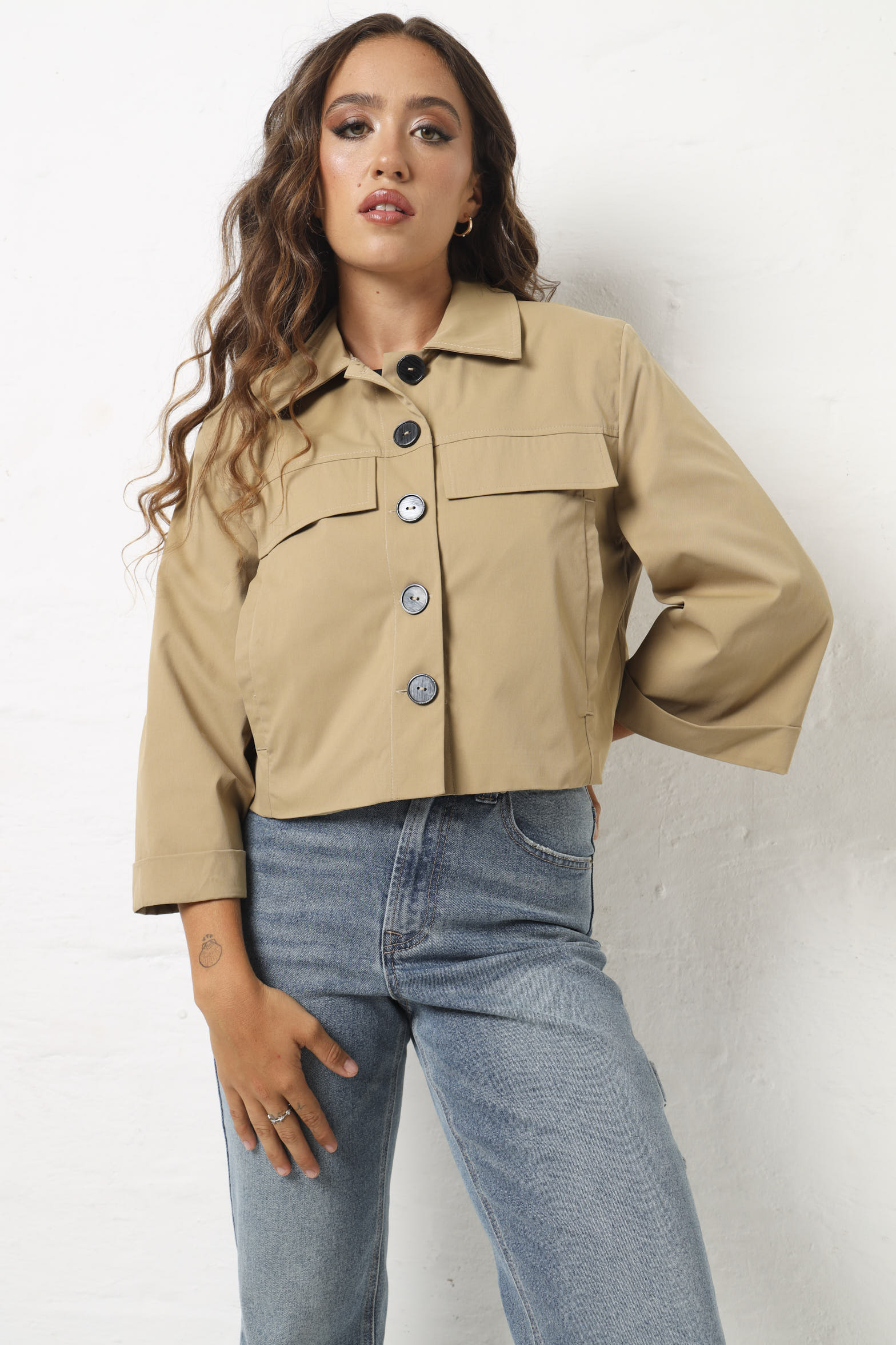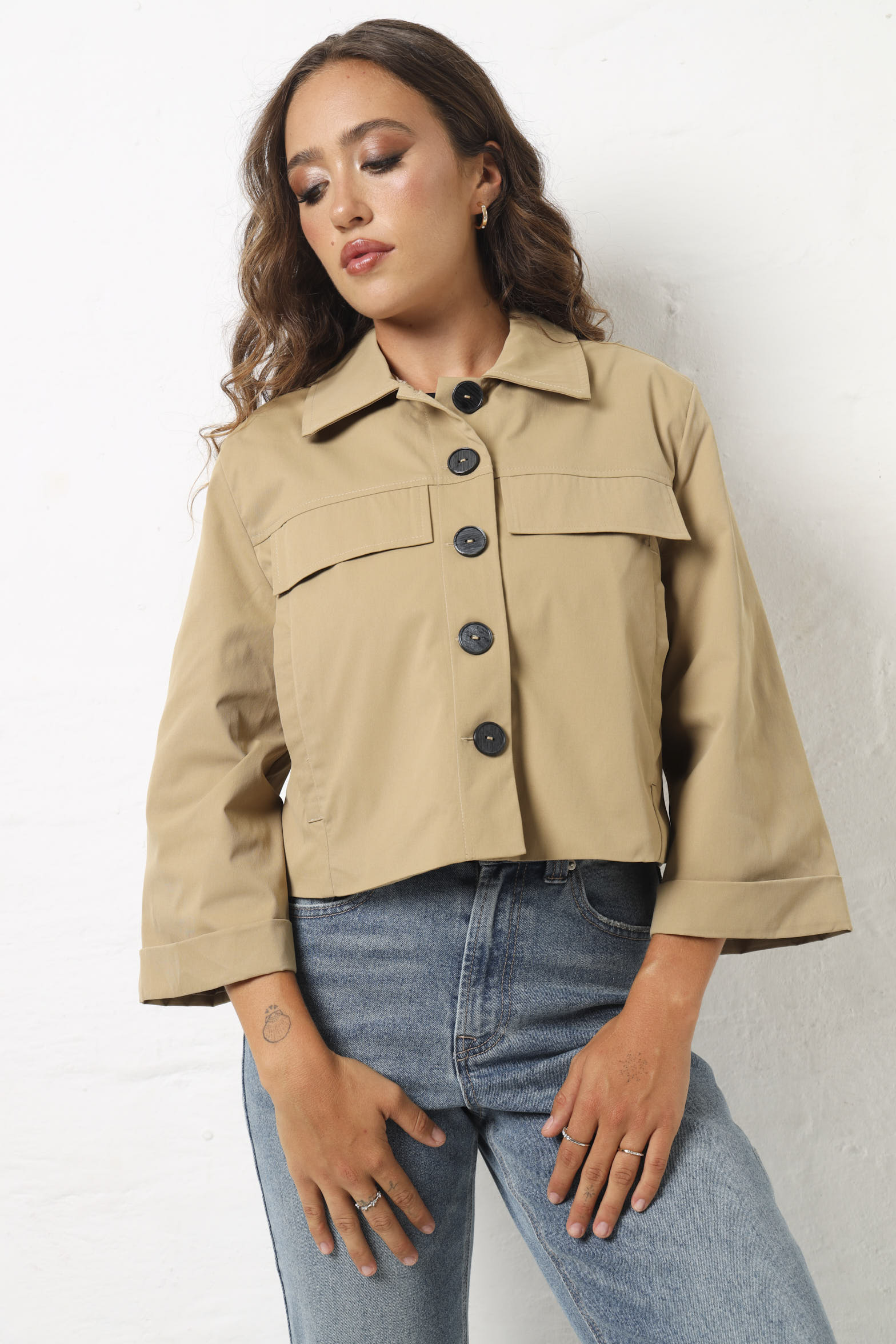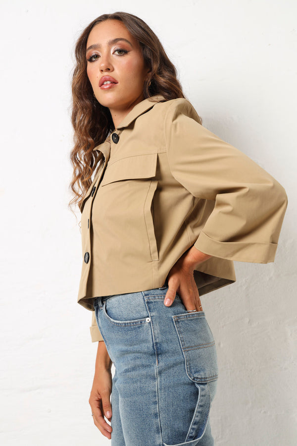 Meet your new go-to layer the Turn Up Sleeve Utility Jacket in Stone. With cheeky rolled sleeves and handy pockets galore, this jacket brings a fun twist to functional fashion. The soft stone shade plays well with everything in your closet, making it the perfect companion for adventures big and small. Style it your way and watch it become your favourite reach-for piece.