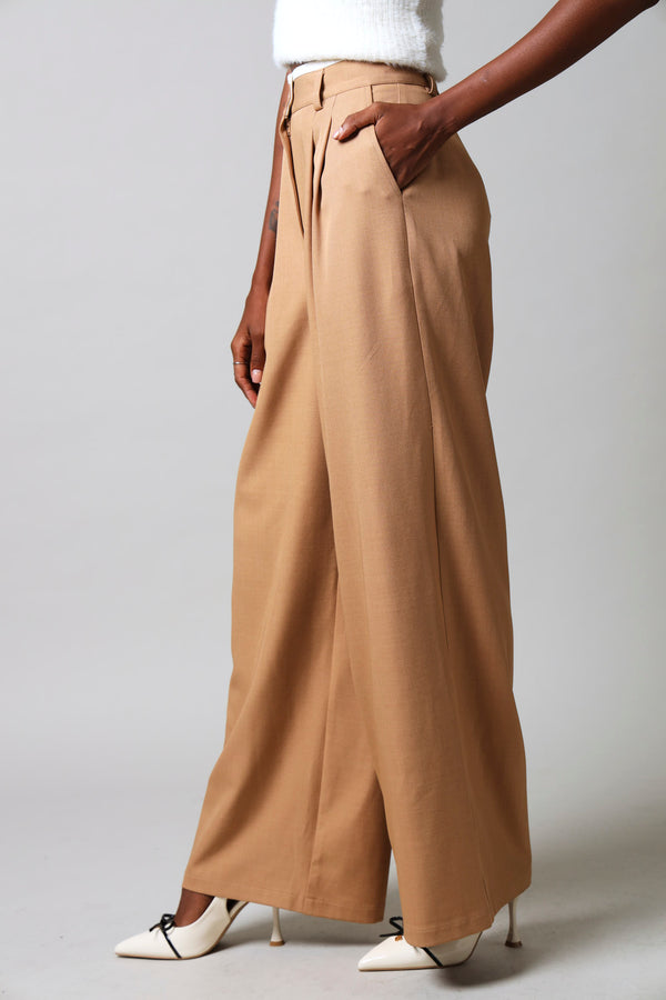 Make a statement with these distinguished Tuxedo Wide Leg Pants in warm tan. Designed for those who appreciate refined tailoring, these trousers feature a graceful wide-leg cut that exudes understated luxury. The neutral tone offers versatility for formal occasions, seamlessly complementing classic tuxedo jackets and evening wear. Perfect for galas, weddings, and prestigious events where sartorial excellence matters.