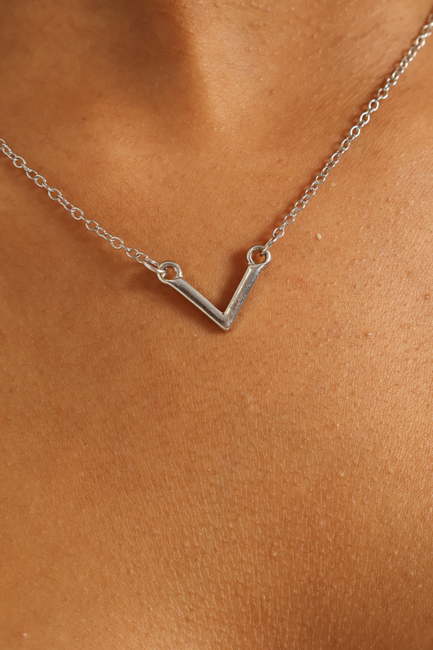 Add a spark of charm to your look with this playful Silver V Pendant Necklace. Its sleek design captures attention while adding a touch of personality to any outfit. Perfect for layering or wearing solo, it’s a fun way to let your style speak your name.